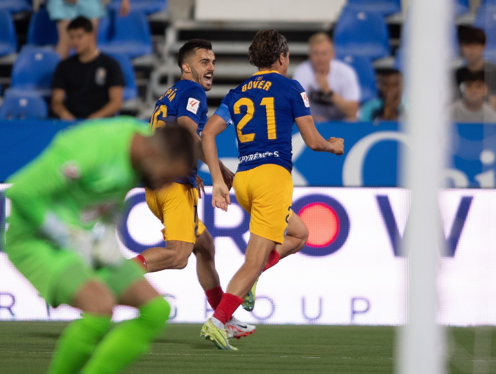 Això sí, el migcampista mallorquí va estar a punt de marcar un altre gol, però aquesta vegada en pròpia meta, i la pilota va anar a l’exterior de la xarxa de la porteria defensada per Nico Ratti. Abans d’arribar al descans, Nico Ratti va salvar un u contra u de Diego García després d’un defectuós refús defensiu de Bover.