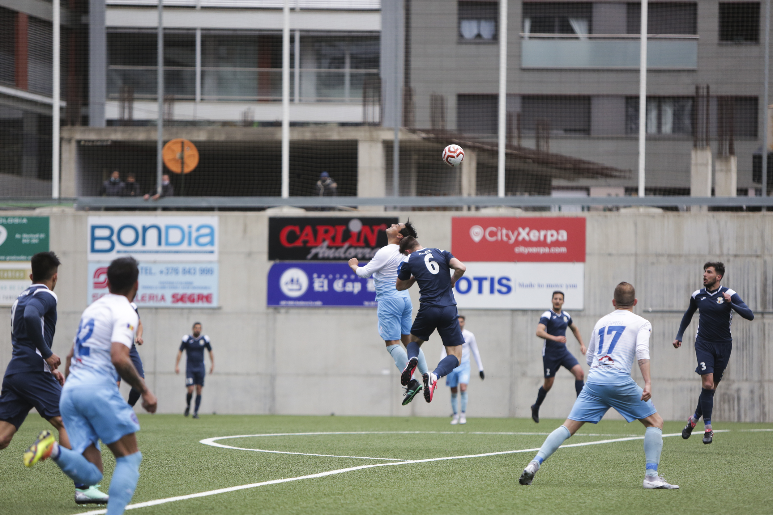 Els d’Albert Jorquera van oferir el seu clàssic joc de possessió davant d’un Atlètic Escaldes amb les idees molt clares i amb molta solidesa defensiva. La primera ocasió i quasi únic dels primers 45 minuts la va tenir l’equip de Luis Blanco i va ser al minut 7 amb una acció individual de Fabio Serra per la dreta, però el seu xut sec, però poc col·locat el va aturar el porter Miguel Ramos.