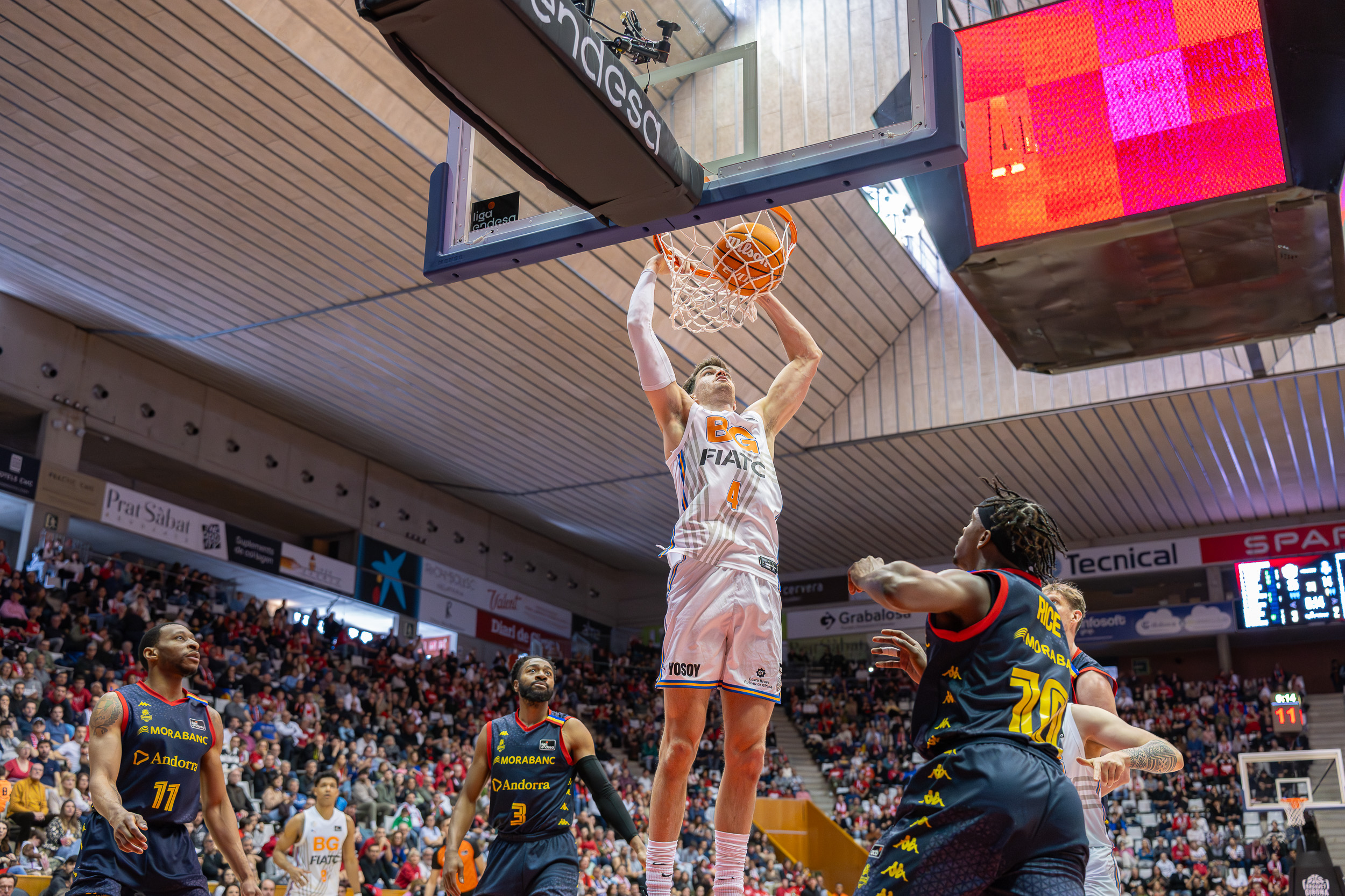 Els de Moncho Fernández va semblar que s'hi jugaven la vida, és a dir, van defensar amb el ganivet entre les dents des del salt inicial. Van deixar sense cap tipus d'idea ofensiva els de Žan Tabak. El parcial va ser de 12 a 4 i només va haver-hi celebracions d'àmbit numèric com els 100 triples de Kyle Kuric amb la samarreta del BC MoraBanc i les 1.000 assistències de Rafa Luz a la Lliga ACB. Els primers 10 minuts van acabar amb un 18 a 12. Només 12 punts en el primer quart. Força preocupant i molt descriptiu de tot plegat.