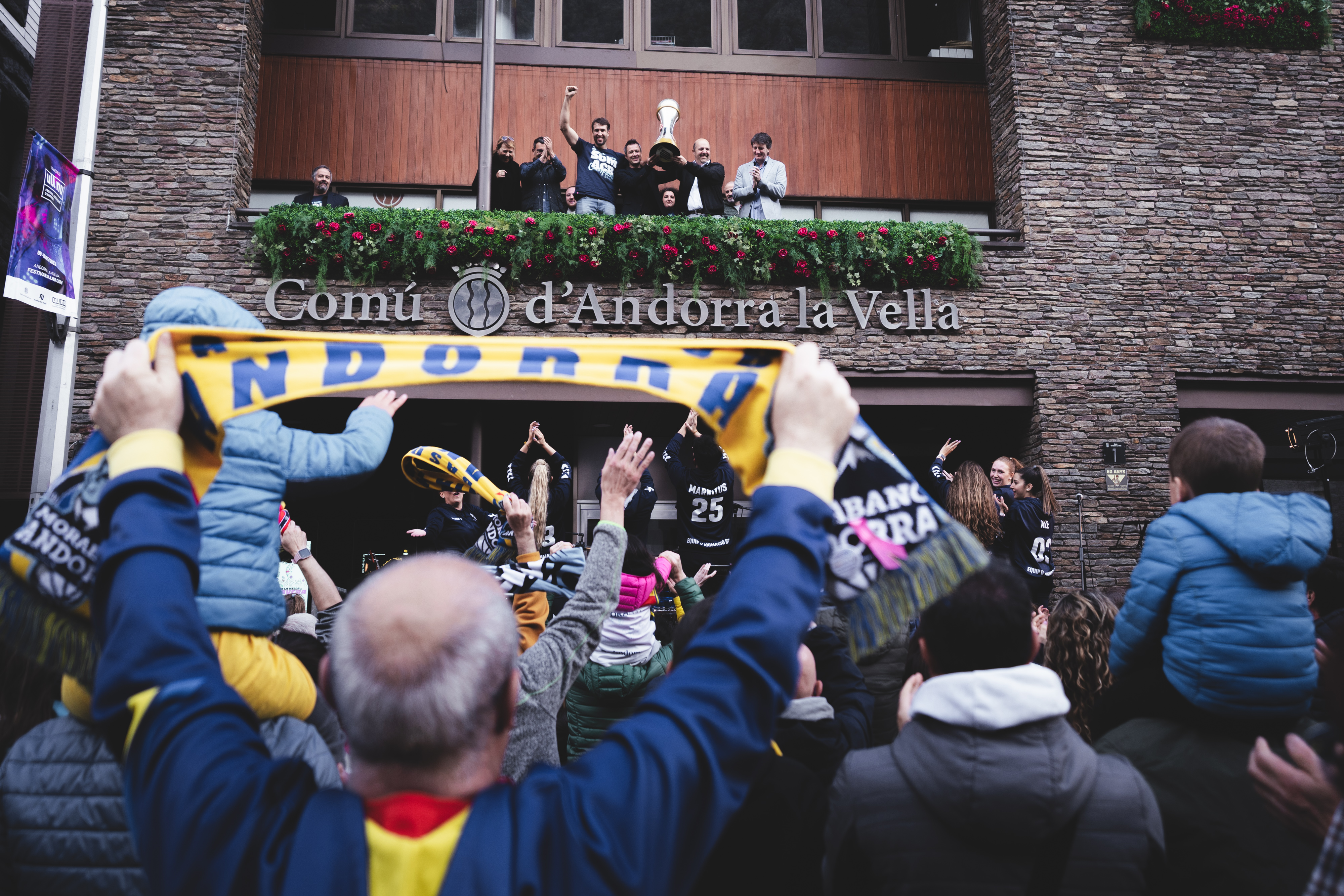 El balcó del Comú d’Andorra la Vella va acollir ahir els campions de LEB Or. Mig miler d’aficionats van escoltar els parlaments dels jugadors i també de membres dels despatxos del BC MoraBanc. L’últim a parlar va ser el capità, l’únic jugador que va acceptar seguir després del maleït descens. “Vull agrair a tothom que està aquí a dalt amb mi. Ha estat un plaer entrenar i jugar al costat d’aquesta gent. L’any passat va ser el moment més dur de la meva carrera esportiva i aquests moments tan difícils amb vosaltres ens han portat fins aquí. I ara puc dir que estic vivint un dels moments més feliços de la meva carrera. Som campions. Som ACB. L’ascens és vostre”, va dir el capità de l’equip.