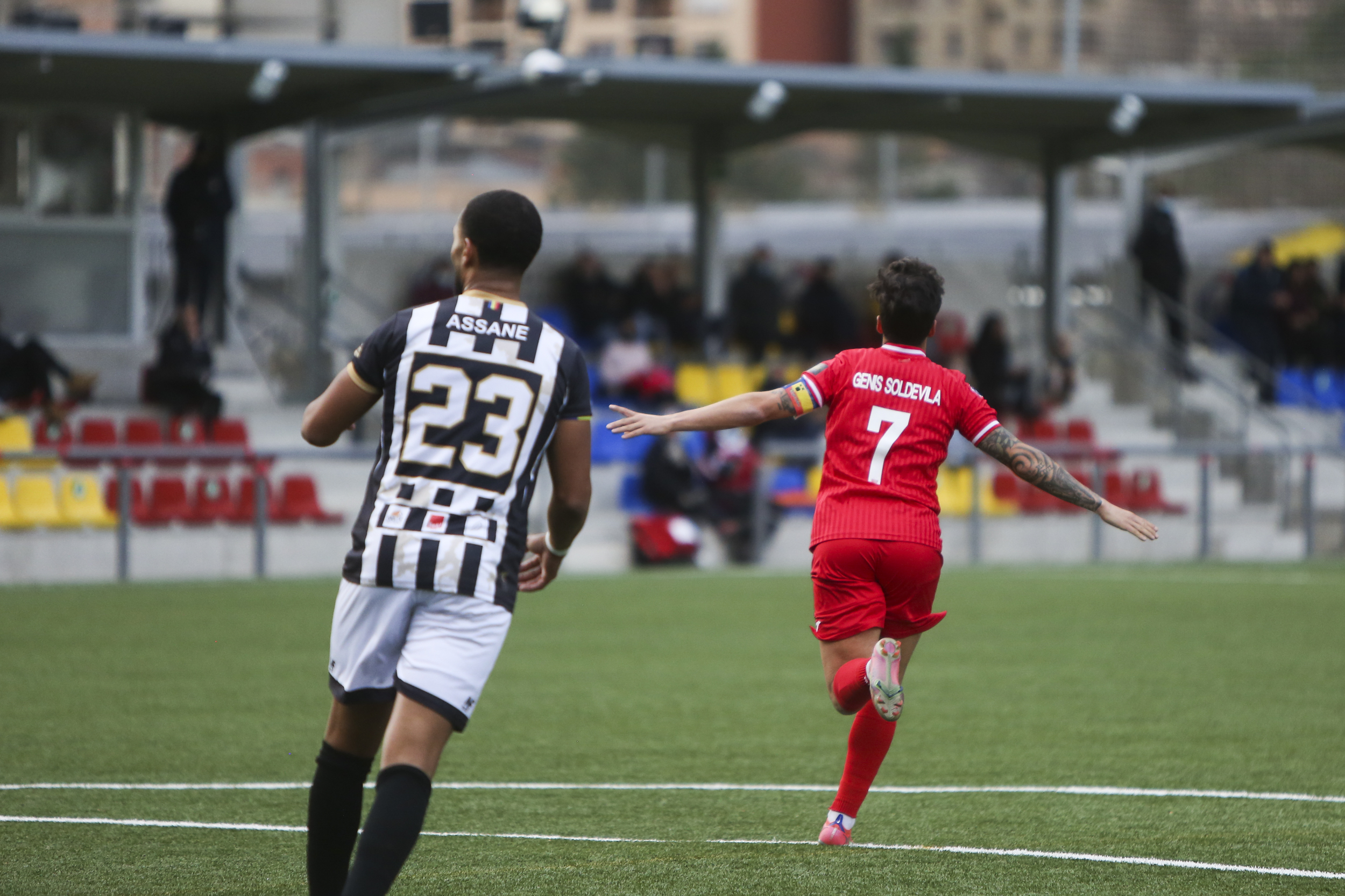 Els de Bahloul Djilali van obrir el marcador en la seva primera oportunitat i Maël Riberon va marcar després d’aprofitar una pilota morta. Els de Fede Bessone van continuar amb la mateixa dinàmica de joc i van insistir a la recerca del seu primer gol. Al minut 26, Genís Soldevila es va topar amb José Cortaberría. Quatre minuts després, Gerard Hulk Artigas va rematar de cap per sobre del travesser una centrada d’Adrià Gallego en una jugada iniciada per Ahmed Belhadji.
