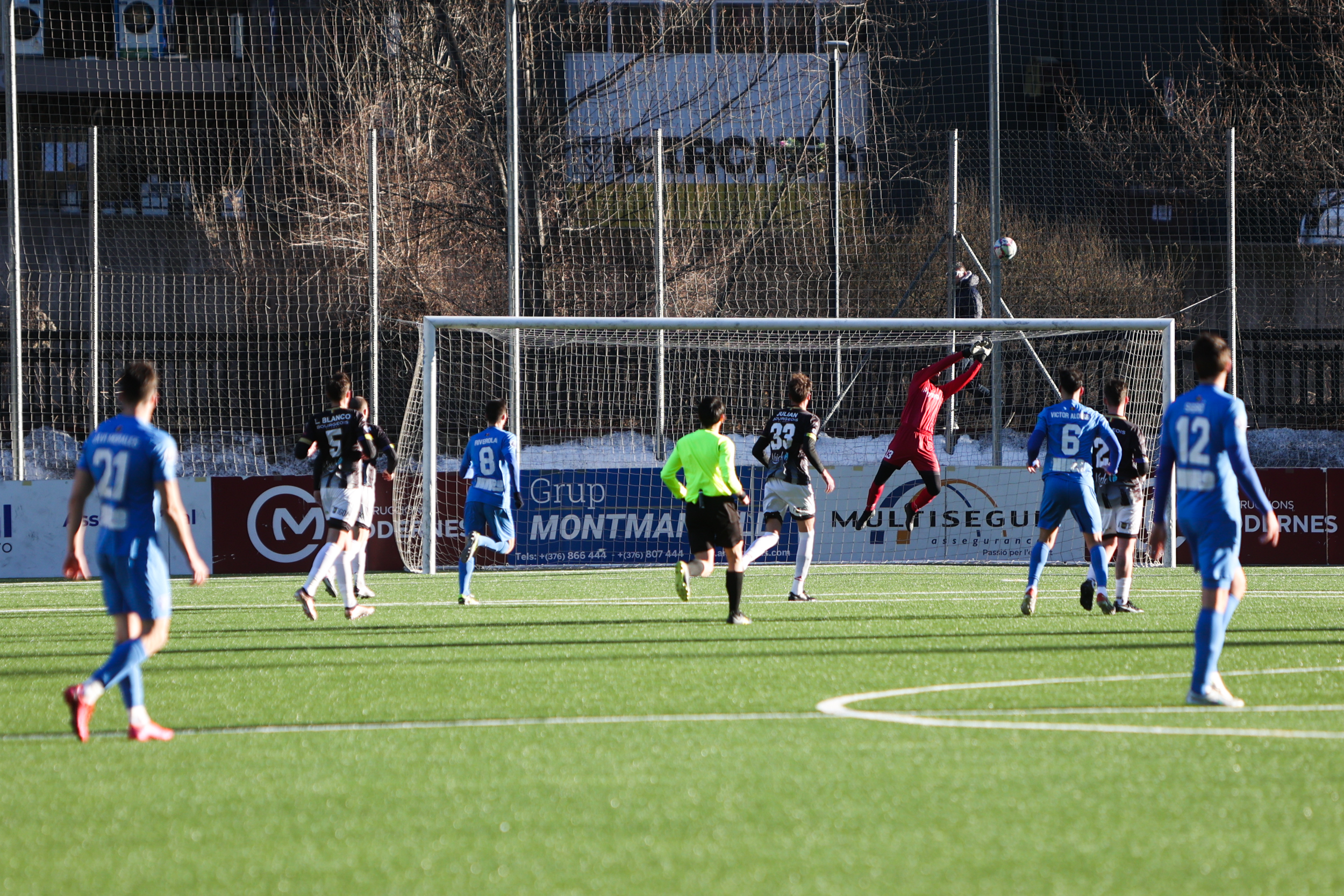 Els de Fede Bessone es van poder avançar en els primers 45 minuts, però el porter Jesús Coca ho va evitar en les seves aturades i també l’àrbitre, que va anul·lar un gol per suposada falta de Víctor Casadesús a Jordi Pérez. A la represa va arribar l’1 a 0 i va ser amb un gol en pròpia meta de Xavi Carmona després d’enviar al fons de la xarxa una centrada de Martí Riverola per l’esquerra. Èric Balastegui va estar a punt d’empatar a la jugada següent, però una vermella directa a Jordi Pérez per una dura entrada a Guillaume López va deixar el partit més que sentenciat. Amb superioritat numèrica, Jesús Coca va ser decisiu, tot i que l’andalús no va poder evitar el 2 a 0 de Guillaume López a porteria buida a l’àrea petita a la sortida d’un córner.