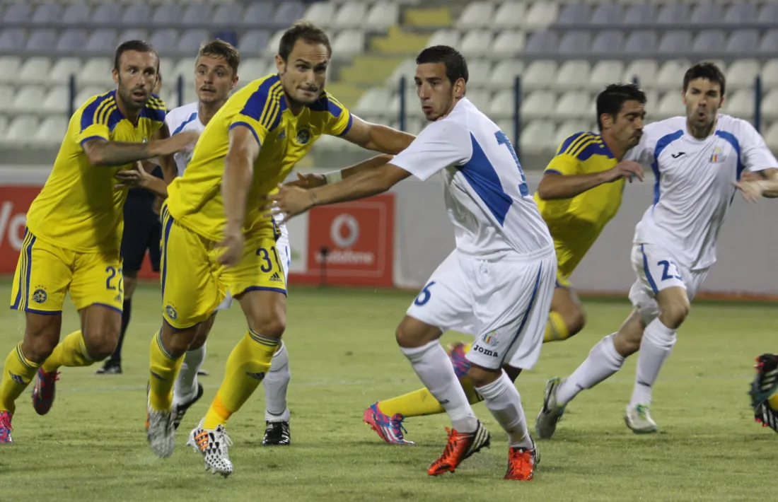 Els colomencs van deixar metres al rival. El joc des d’un bon començament va transcórrer en terreny andorrà, amb els centrals del Maccabi repartint joc al mig del camp. Hi havia dues línies defensives ben marcades de 9 homes, amb Parra sol al cercle central. No es pot dir que en la primera part patissin tot i el domini que exercien els hebreus. Mikha, amb l’esperó, va provar de sorprendre prop de l’àrea petita Eloy, però la pilota marxava excessivament creuada. Al minut 9 va arribar la primera de les dues bones ocasions de què van gaudir els qui jugaven com a locals encara que fos a Larnaca, en un estadi Antonis Papadopoulos pràcticament buit. Només els càntics dels pocs aficionats israelians hi posaven una mica d’ambient. Les instruccions des de les dues banquetes se sentien altes i clares. Prica, l’autor del gol de l’anada, enviava l’esfèrica al pal amb un xut creuat a mitja alçada.