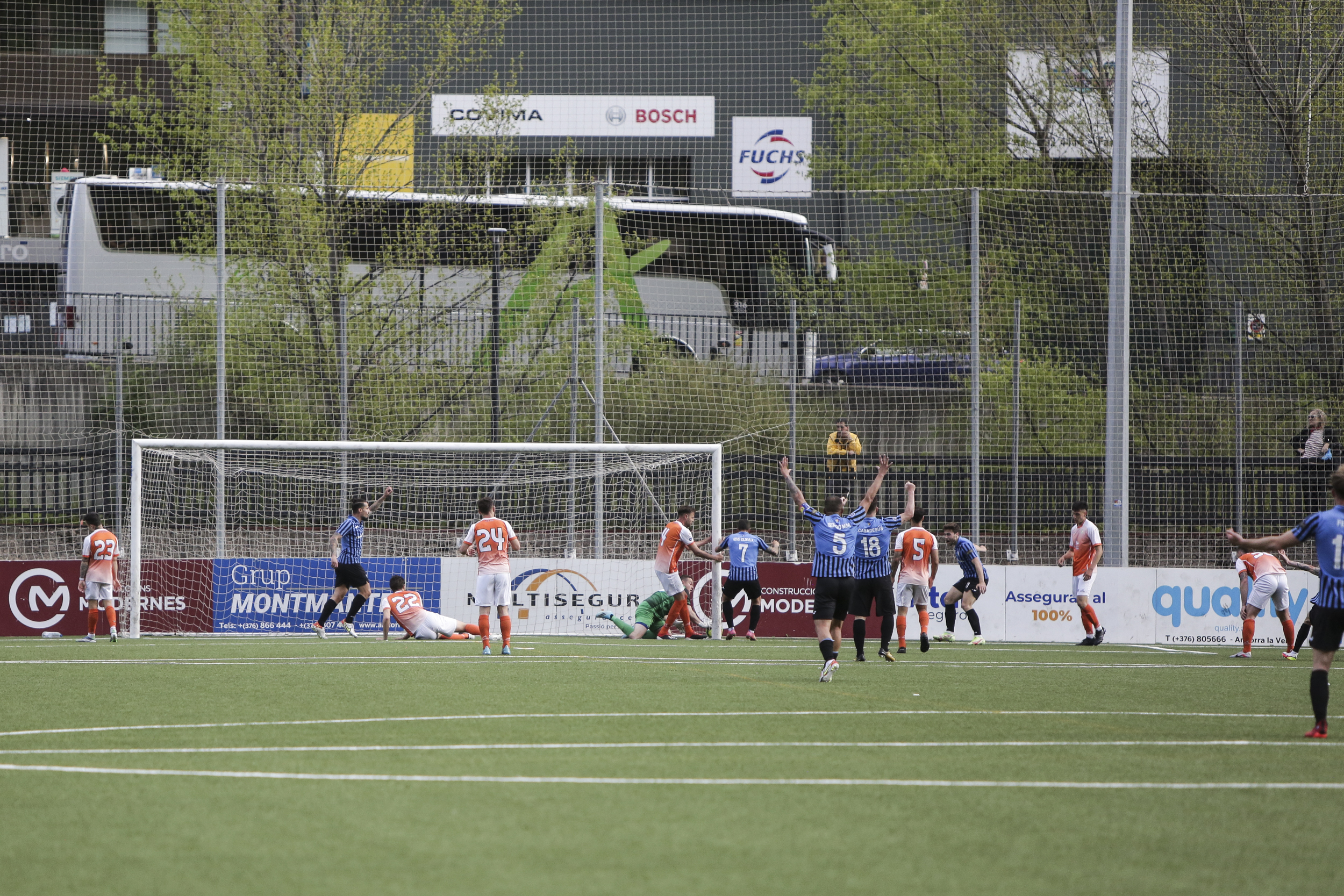 Al 34, en una jugada de mala sort, Sgro es marcava en pròpia porteria l’empat i ja al segon temps, Casadesús va capgirar el partit pels escaldencs en transformar un penal provocat per Artigas. Els lauredians van avançar línies buscant el gol de l’empat i els de Canals haurien pogut sentenciar al 81 en una contra amb 4 atacants per només dos defenses que no van saber resoldre. Sí que ho va fer, però dos minuts més tard, Soldevila que des de l’interior de l’àrea va picar per damunt el porter per col·locar el 3 a 1 a l’electrònic, marcador que va ampliar, ja en l’afegit, Ilde Lima en rematar de cap un servei de córner.
