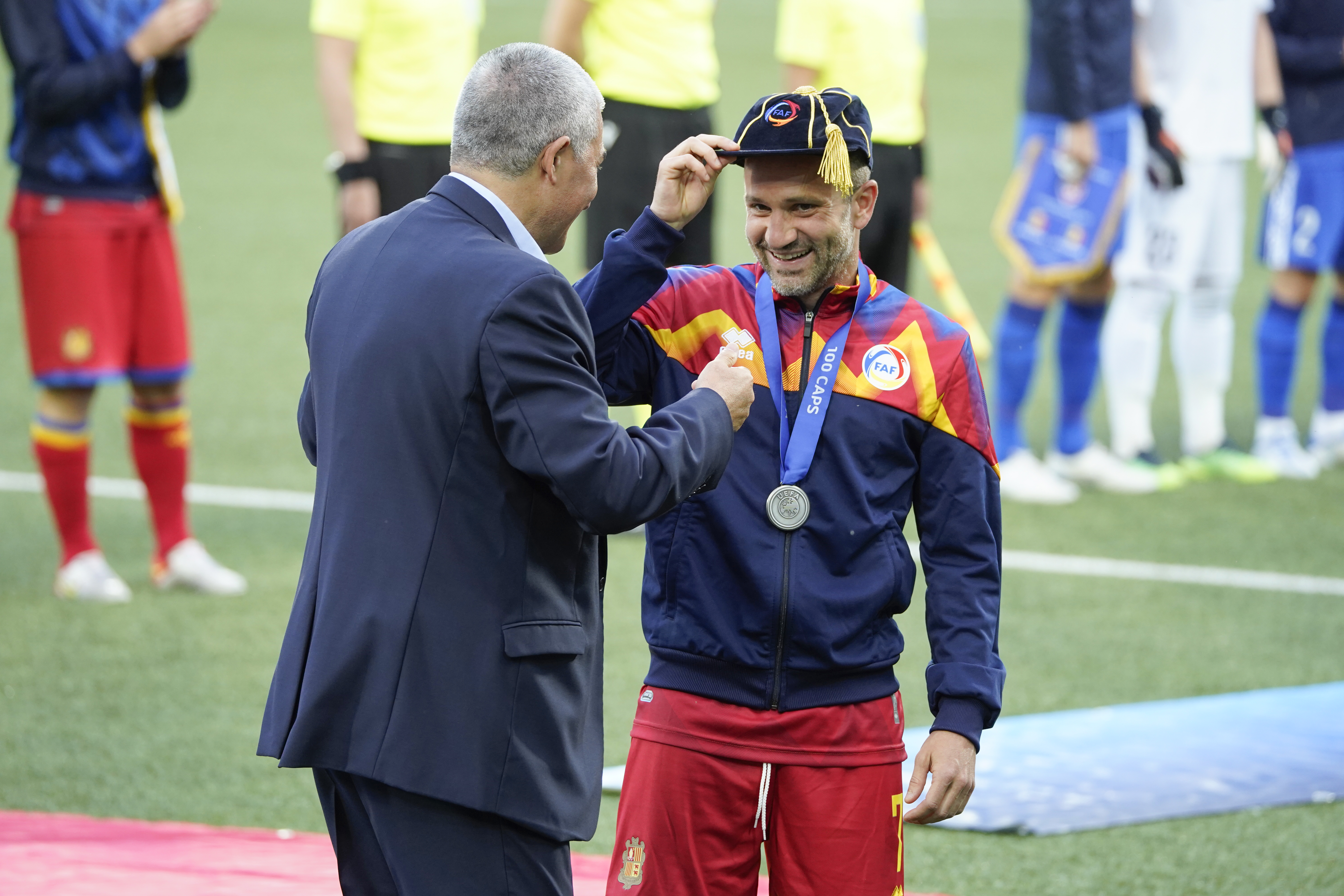 El primer partit en competició oficial de Marc Pujol va ser el 16 d’agost d’aquell mateix any contra Estònia i aquella vegada va entrar al terreny de joc per substituir un altre mític, Emiliano González. Vint-i-dos anys després, i ja amb 39 anys, va rebre dilluns la boina que l’acredita com a centenari de la selecció. Una boina que és cosa de vells, però també de privilegiats. 100 partits o més no estan a l’abast de tothom, i aquí l’honor pertany a quatre jugadors.