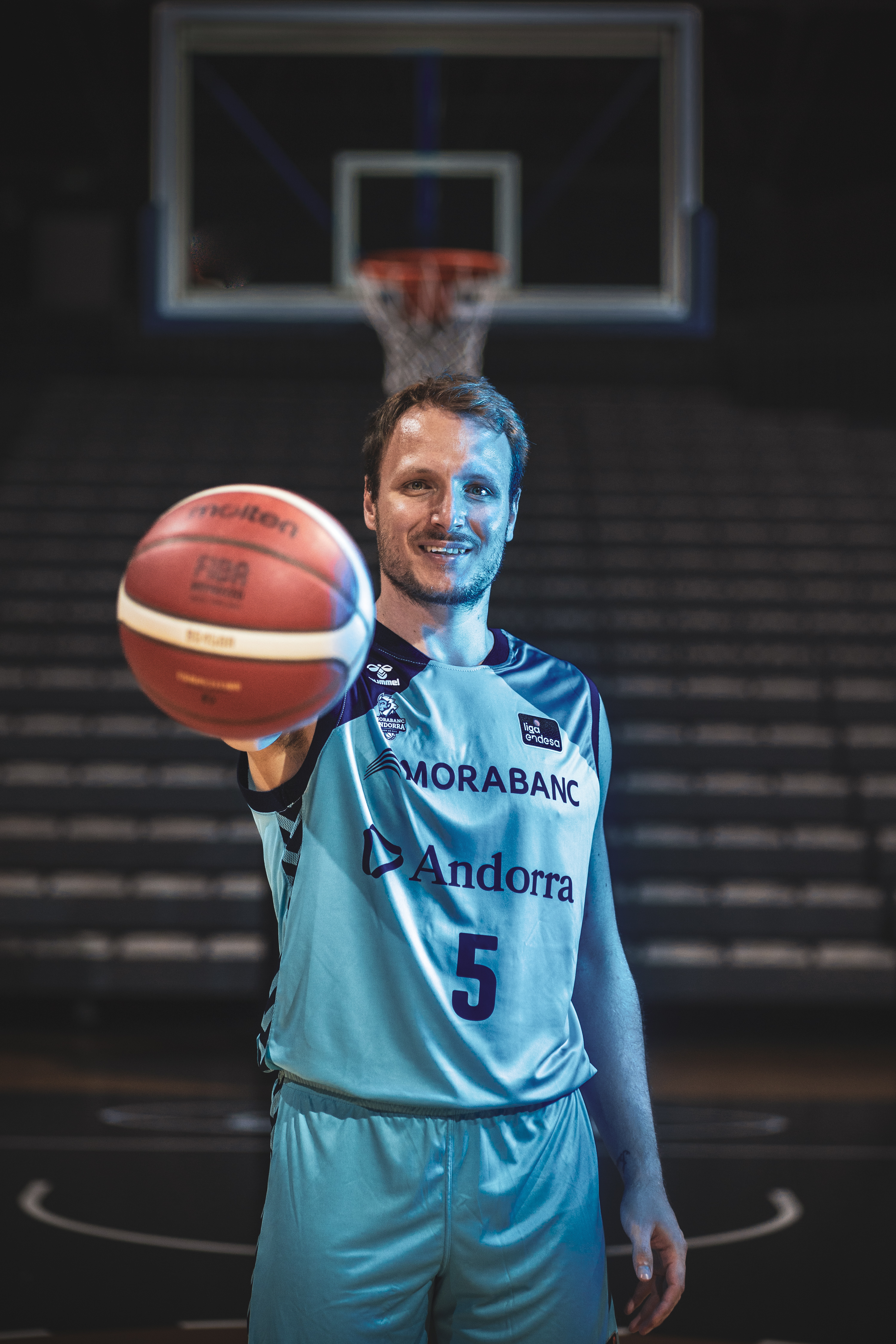 Del blau obscur de les últimes temporades al turquesa. El BC MoraBanc Andorra ja té nova pell en el seu retorn a la Lliga ACB després del pas d’un any per la LEB Or. Rafa Luz, el base hispanobrasiler, va fer de model d’aquesta versió més clara de la marca Hummel. El blau obscur, el tradicional dels últims cursos, serà el segon equipament. Aquest mantindrà també a les espatlles motius grocs i vermells per emular la bandera tricolor.