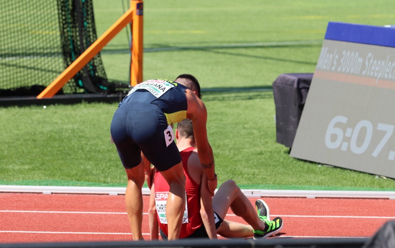Nahuel Carabaña va assistir un rival a la prova dels 3.000 obstacles de l’Europeu de Munic. Va acabar últim, però es va endur una ovació.