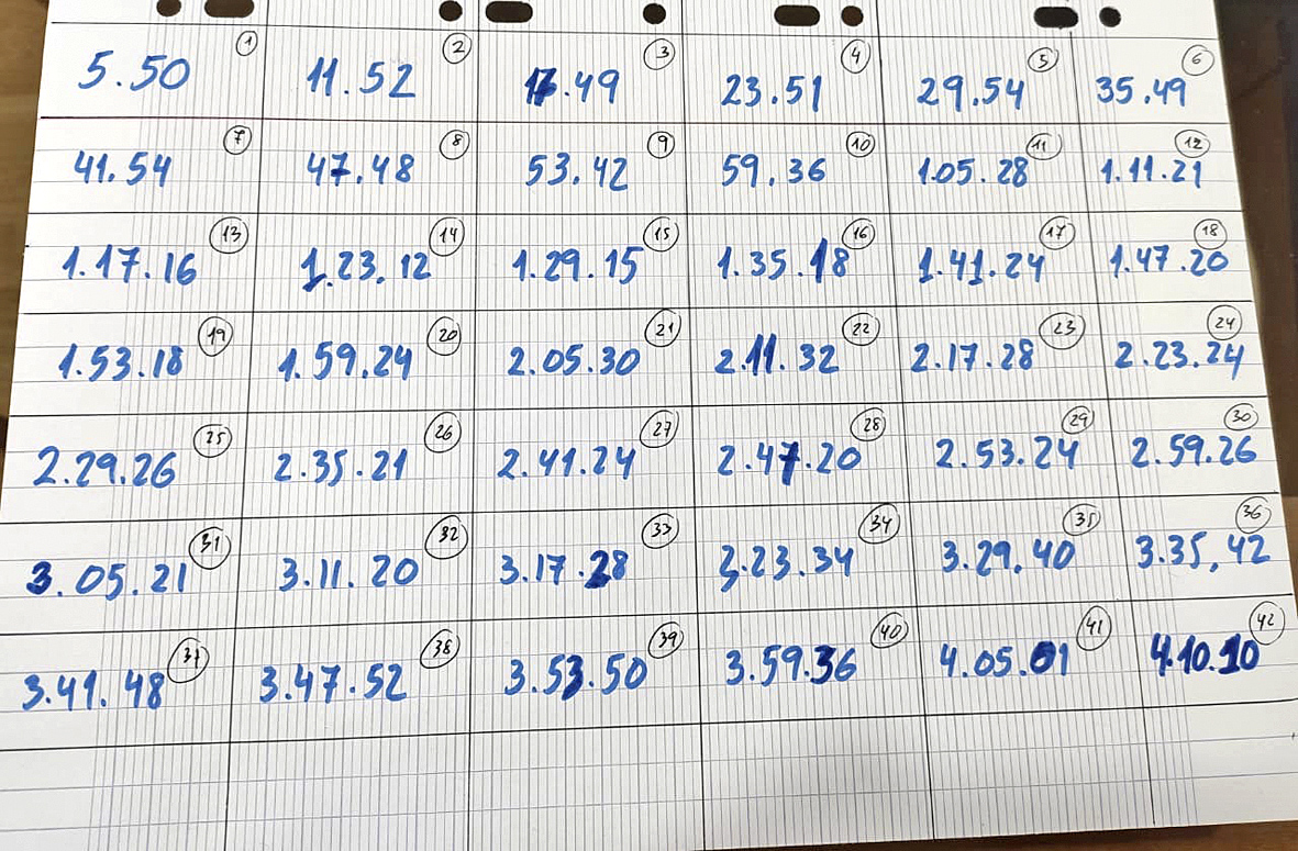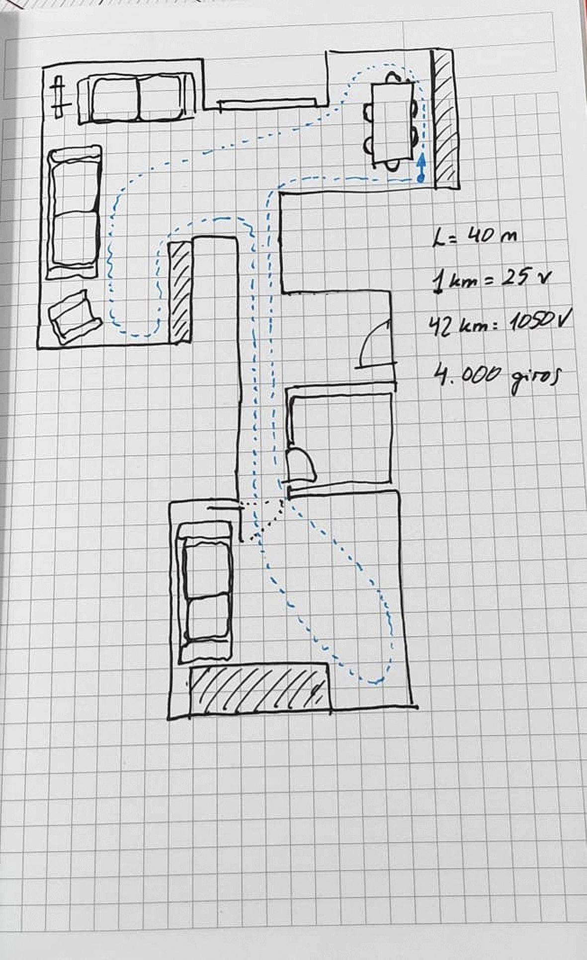 Cada 25 voltes era un quilòmetre i a cada quilòmetre apuntava en un paper per no descomptar-se. En total, unes quatre horetes en quarantena. “És la primera vegada que ho faig i de coco és molt dur. Sortien gairebé 4.000 girs i aquí les cames i l’esquena pateixen molt. Un mareig total. Síndrome de hamster. Els últims 9 o 8 quilòmetres se’m van fer molt llargs. Per tornar-se boig.”