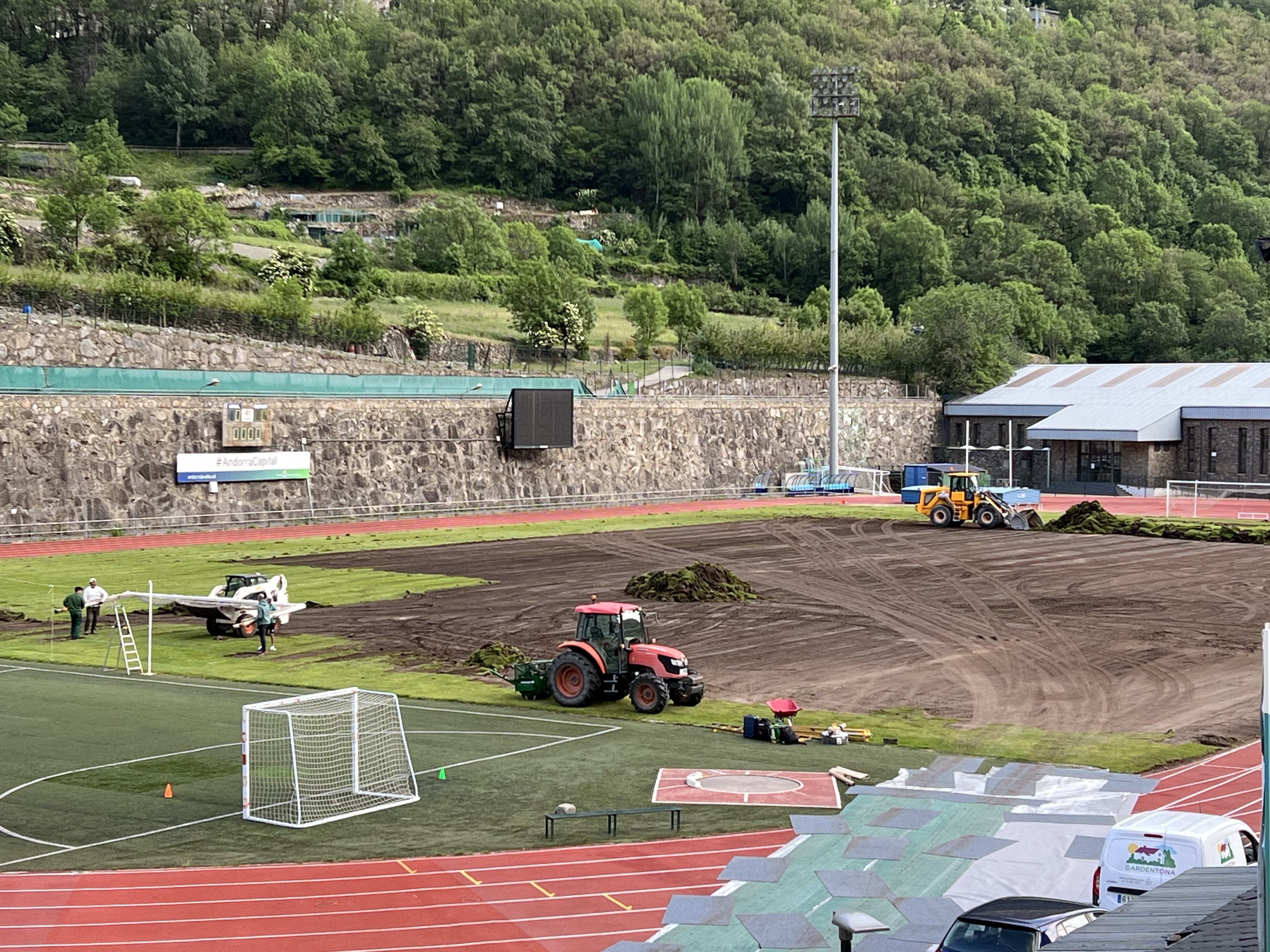Rentada de cara a l’Estadi Comunal Joan Samarra, almenys a la gespa natural. Ja tocava, i en bona part gràcies a l’FC Andorra. Per tant, els partits de la UEFA Conference League de l’Inter Club Escaldes i l’FC Santa Coloma es disputaran en una superfície nova de trinca després de molts anys posant nyaps.