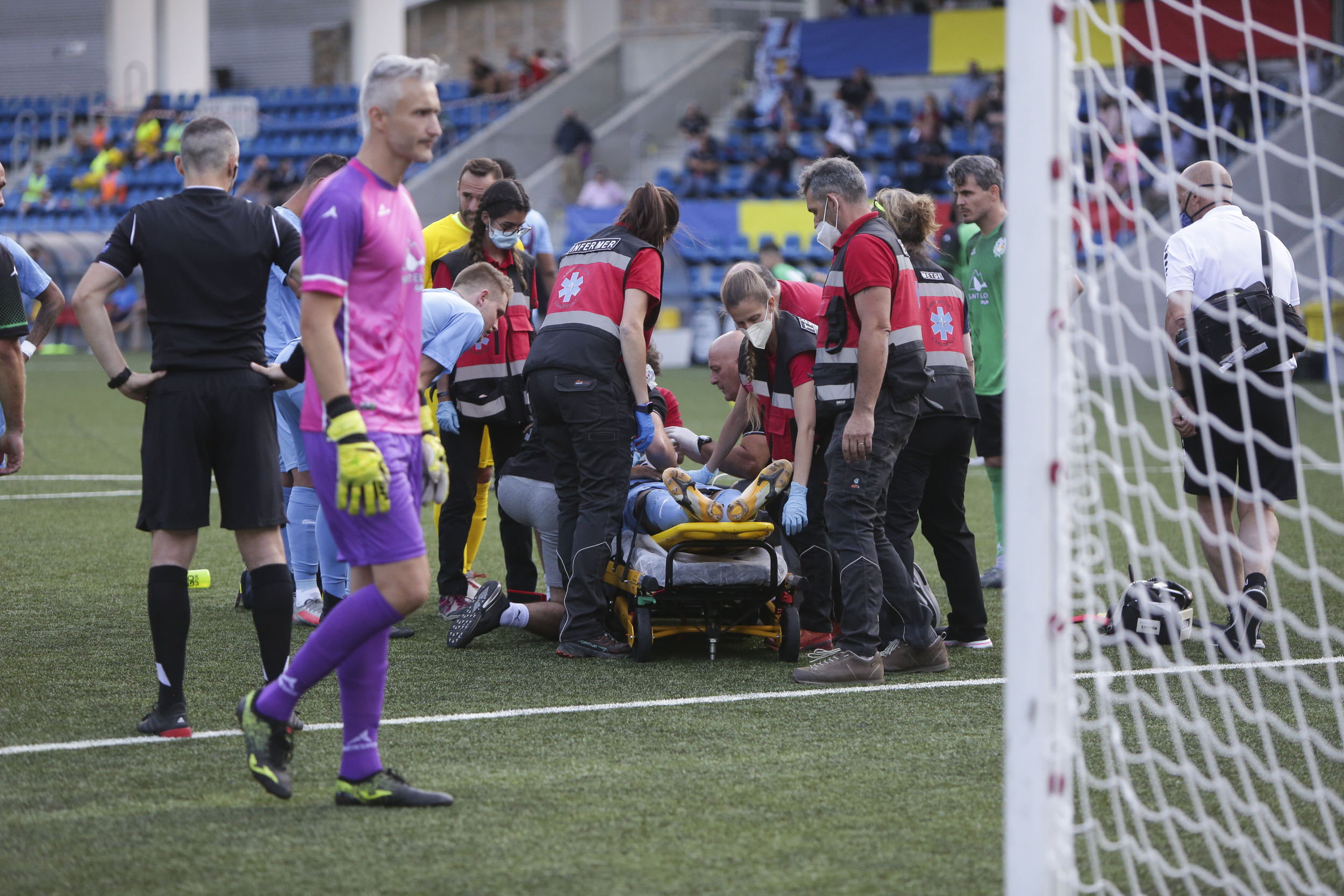 Al minut 76 va arribar l’ensurt del partit després d’un xoc entre el porter Nacho Zabal i el davanter brasiler del Gzira United, Maxuell Samurai. El central Jon Echaide va demanar, al moment, l’entrada de les assistències i tot seguit va entrar la Creu Roja. El brasiler de Fortaleza va ser atès i tot va quedar en un bon ensurt. Li van col·locar també un collar ortopèdic.