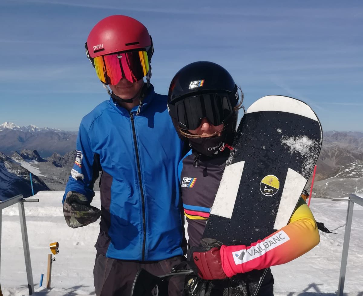 A Stelvio, a buscar sensacions. Maeva Estevez i Mario da Cruz, els surfistes de neu de la Federació Andorrana d’Esquí (FAE), es troben a Passo Dello Stelvio i els dos amb les seves particulars estructures. Maeva amb l’equip de França de Copa d’Europa i Da Cruz amb l’equip C de Copa d’Europa de la Reial Federació Espanyola d’Esports d’Hivern (RFEDI).