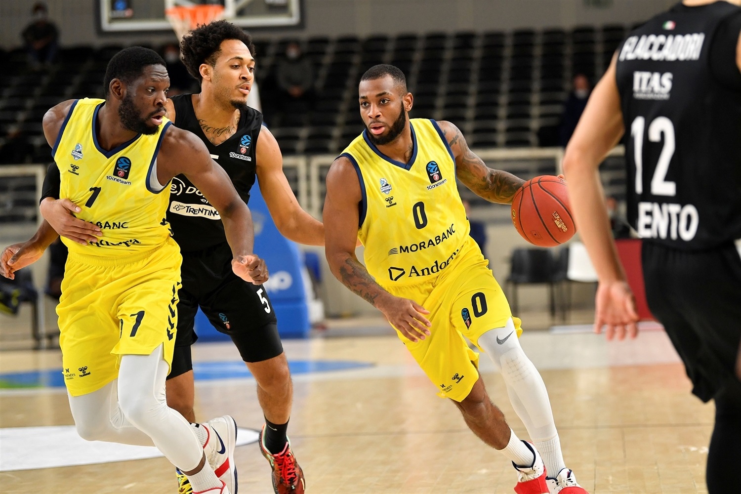 Brots verds, però contra l’últim classificat del grup A de l’EuroCup i també farcit de baixes importants i amb un joc tremendament anàrquic. Sigui com sigui, David Eudal, el nou tècnic principal després de la destitució d’Ibon Navarro, va complir la dita d’entrenador nou, victòria segura en vèncer per 71 a 82 el Dolomiti Energia Trento. Per tant, els jugadors van fer el primer pas per sortir del divan en el qual es van asseure diumenge després de la dura derrota contra el BAXI Manresa. El BC MoraBanc va arribar a guanyar de 25 punts de diferència (40 a 65) al tercer quart. A l’últim, els de Lele Molin es van apropar a 9 punts (69 a 78) a poc per al final. El més important era trencar la ratxa de set derrotes consecutives (cinc a l’ACB i dos a l’EuroCup) i començar a netejar aquests caparrons plens de negativitat.