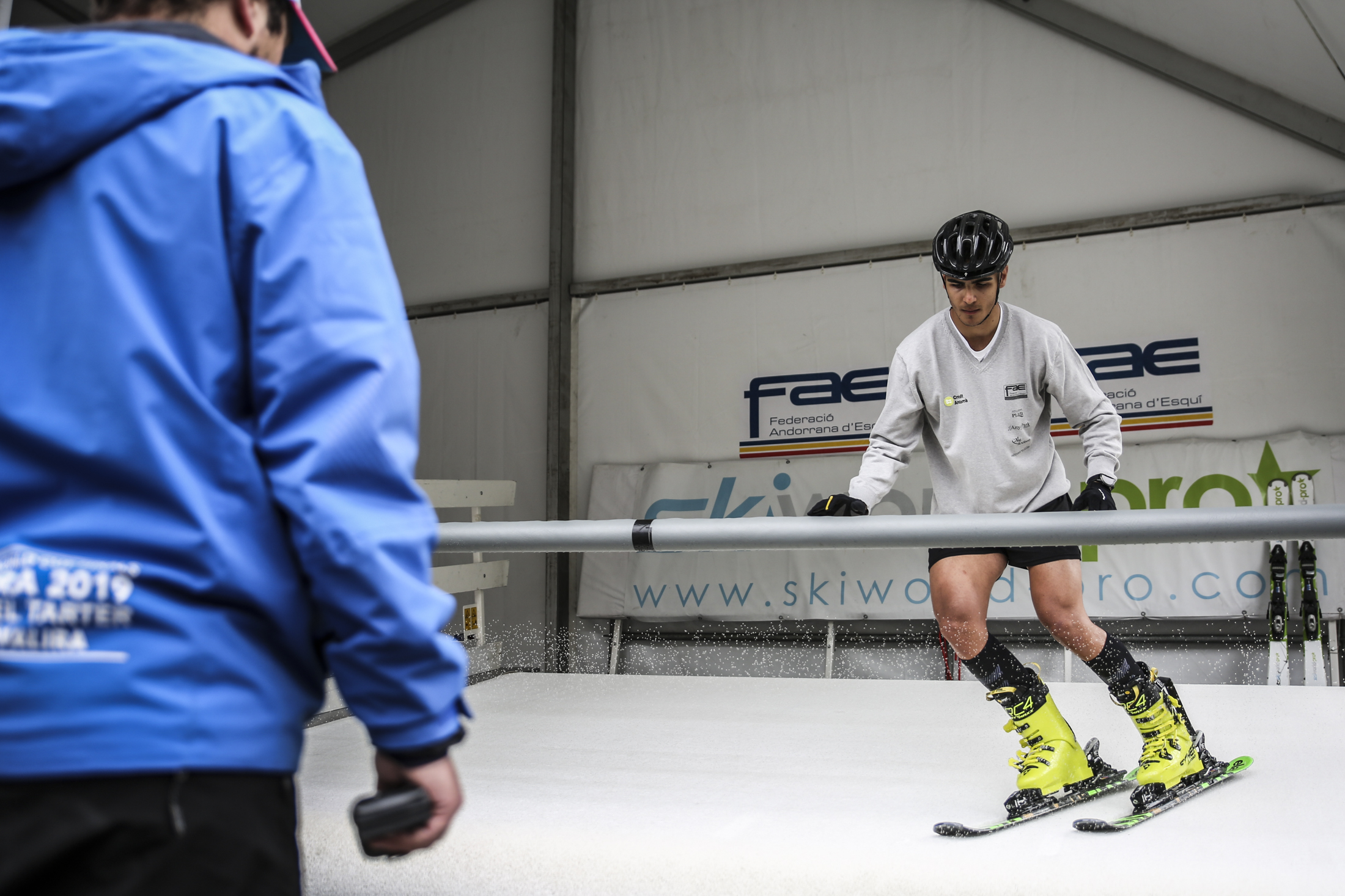 La incertesa que ha portat el coronavirus també ha afectat els esquiadors de la Federació Andorrana d’Esquí (FAE). L’ens, amb la col·laboració del Govern d’Andorra, va presentar ahir la seva nova joguina: un simulador d’esquí. Un remei –sense neu– contra el coronavirus. Es troba instal·lada a la part exterior del Centre de Tecnificació d’Ordino (CTO). Per utilitzar-la hi ha dos calendaris. De dilluns a dissabte estarà al servei dels clubs i de la FAE, i els diumenges estarà oberta al públic, amb classes d’una hora i en format particular o col·lectiu. Aquestes classes estaran supervisades per un tècnic titulat i format per a l’ús del simulador. “No és esquiar, però és ideal a falta de poder-ho fer sobre pista”, va dir el tècnic de la FAE, Nico Belcredi. “Es nota bastant la diferència, però podrem treballar la tècnica”, va indicar l’esquiador de la FAE, Bartumeu Gabriel.
