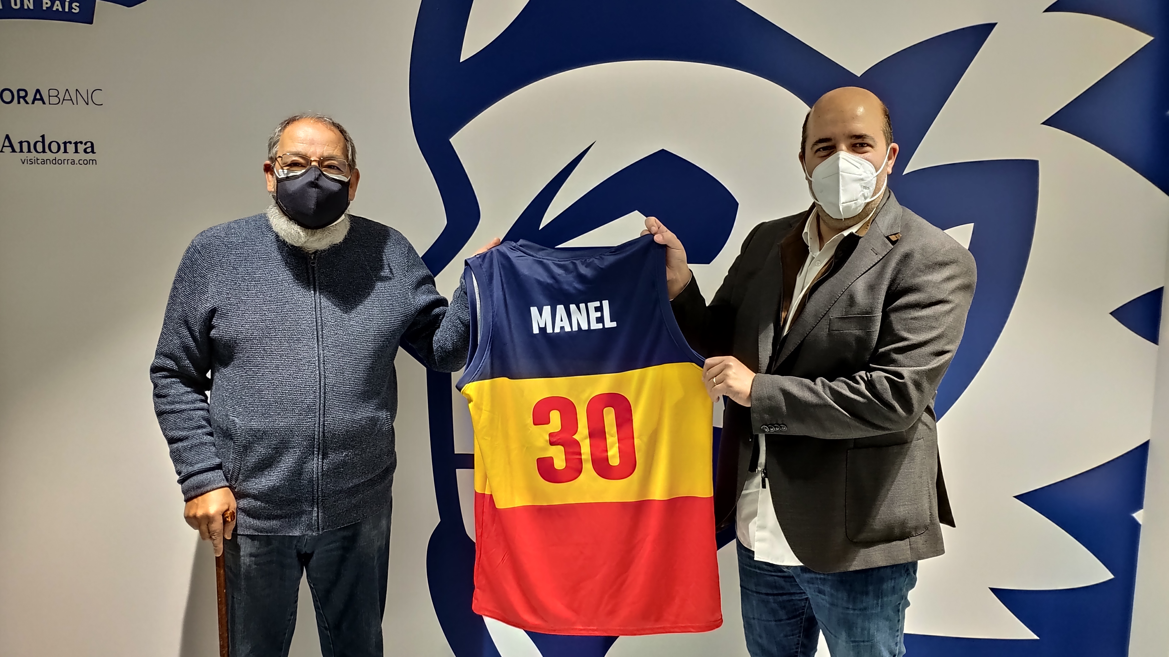 Els trenta anys a la presidència de la Federació Andorrana de Bàsquet (FAB) de Manel Fernández no van passar desapercebuts per al Bàsquet Club MoraBanc Andorra. El ja expresident de l’ens va rebre una samarreta vintage del BC MoraBanc amb el seu nom al darrere i el número 30, que són els anys que ha dirigit la FAB. “Només l’he pogut conèixer personalment com a president de la FAB. Sempre amb una dedicació absoluta, un amor pel bàsquet com s’ha vist en pocs, i la seva trajectòria de 30 anys ho denota. Segur que ha tingut moments espectaculars i d’altres que no tant. Té molt mèrit”, va assegurar el màxim mandatari del BC MoraBanc, Gorka Aixàs, que va lloar Manel Fernández d’aquesta manera. “Plega un gran. Com ell, n’hi haurà pocs a aquest país. Espero que el puguem seguir gaudint molts anys encara dins del nostre esport”.