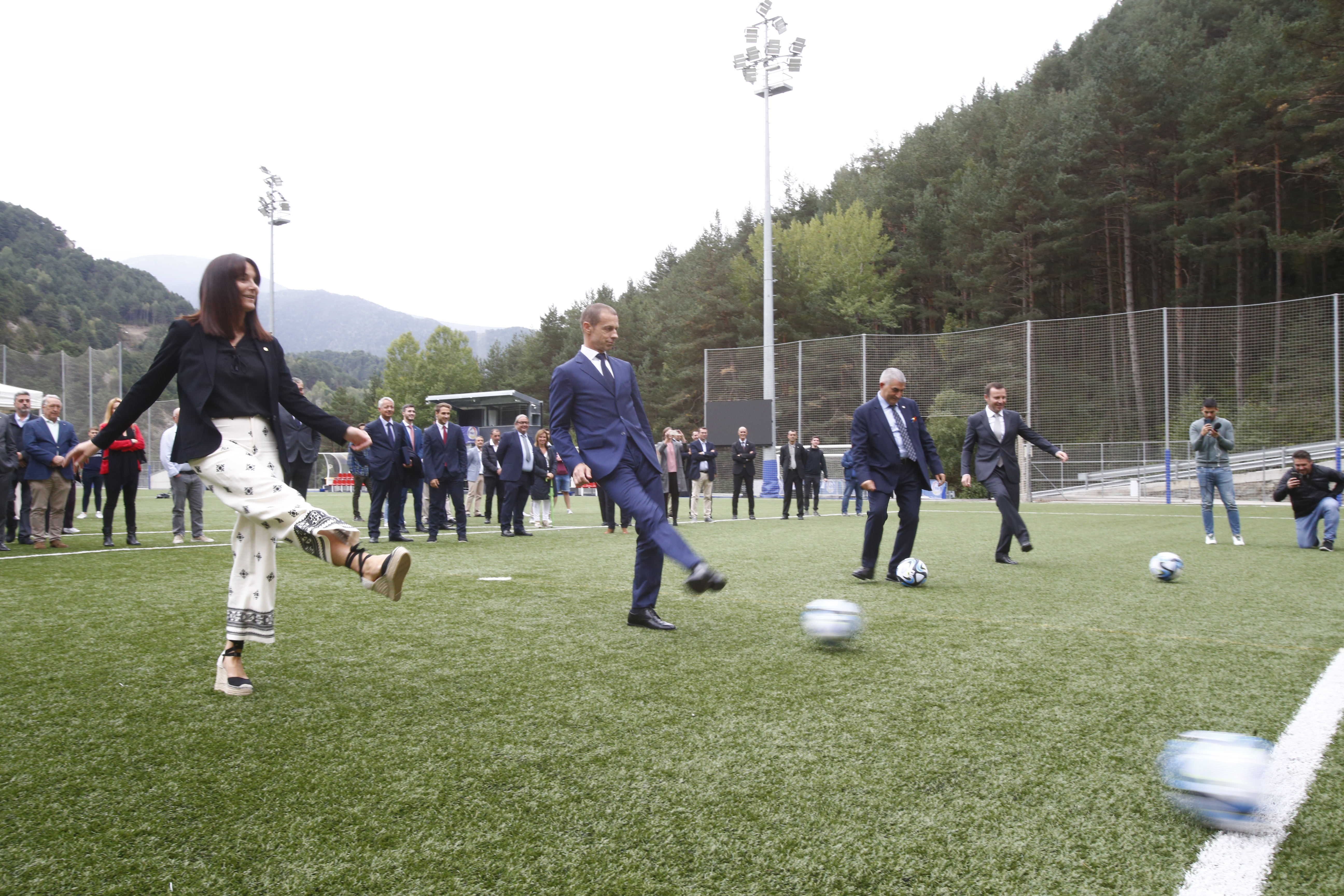 L’altra instal·lació que està en construcció és la de l’estadi d’Encamp. “És essencial perquè algunes vegades heu estat a prop de no poder jugar. Desitjo que l’estadi d’Encamp sigui una realitat com més aviat millor. Espero que el Govern ajudi perquè la qualitat del futbol del país està pujant i això és una bona notícia”, va dir Čeferin. Aquesta nova instal·lació es podria inaugurar, com creu la FAF, amb un partit de la sub-21 del Preeuropeu contra Portugal el mes de setembre. “Sempre insisteix UEFA i FIFA que on organitzem Preeuropeus o aquest tipus d’esdeveniments i amb la instal·lació d’Encamp això ho podríem fer realitat. Per tant, ho sol·licitarem”, va sentenciar Félix Álvarez. La inauguració es va tancar amb un servei d’honor, és a dir, uns remats cap a porteria de membres de FIFA, UEFA, FAF i Govern.