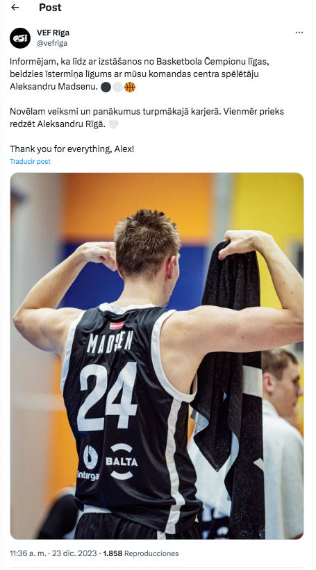 El VEF Riga s’acomiada de Alex Madsen
