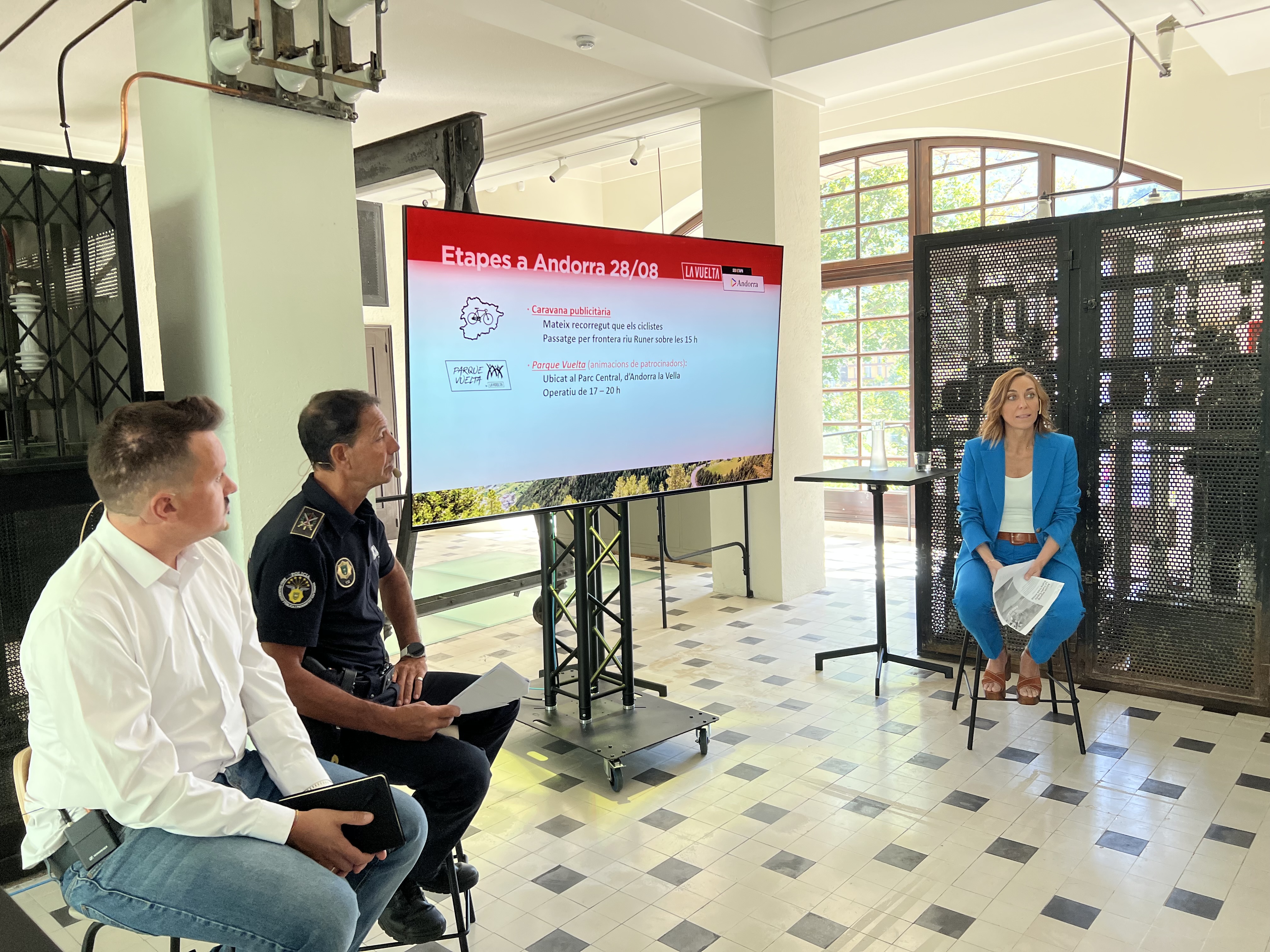 La sortida de la Vuelta es realitzarà dimarts des de l’avinguda Tarragona d’Andorra la Vella i les afectacions de trànsit seran lleus en comparació a dilluns. Es preveuen talls a partir de les 13 hores. L’avinguda Tarragona en sentit sud estarà tallada, i la circulació en tots dos sentits es farà pels carrils del sentit nord. L’aparcament del Parc Central estarà inoperatiu, ja que allà hi haurà el village. “Hi haurà una afluència turística molt important, però és complicat ara per ara fer una estimació de públic. Ho farem més endavant”, va dir Noemí Pedra, directora de màrqueting i comunicació d’Andorra Turisme.