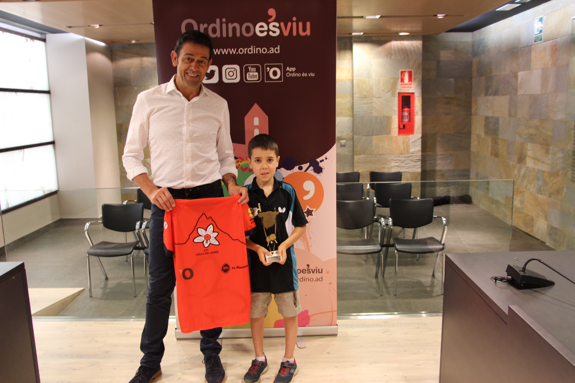 El menut palista del Club de Tennis Taula Valls del Nord Oriol Martínez va ser rebut ahir pel cònsol major del Comú d’Ordino, Josep Àngel Mortés. Oriol Martínez, actual campió d’Espanya en categoria prebenjamina, va lliurar una samarreta signada i va mostrar els títols de campió d’Espanya i Catalunya. El pròxim repte serà al Campionat d’Europa a Estrasburg.