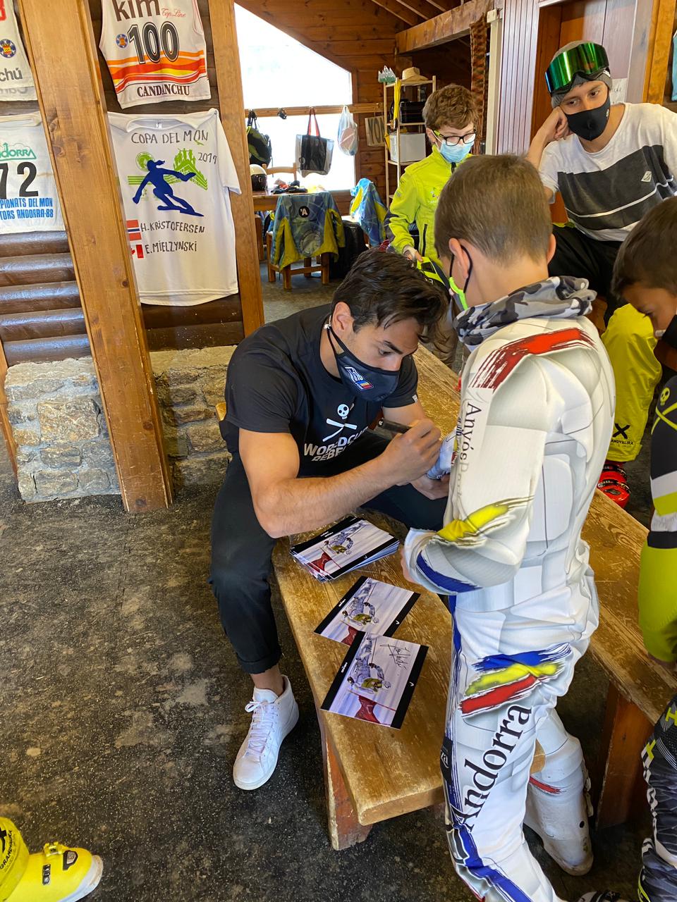 L’esquiador de la FAE, que ja ha tancat aquesta temporada, va explicar als més petits la seva experiència com a corredor de l’equip nacional i també va recordar quan era petit com ells. També els va encoratjar a continuar apostant per l’esquí i va donar una sèrie de consells, tant tècnics com també físics.