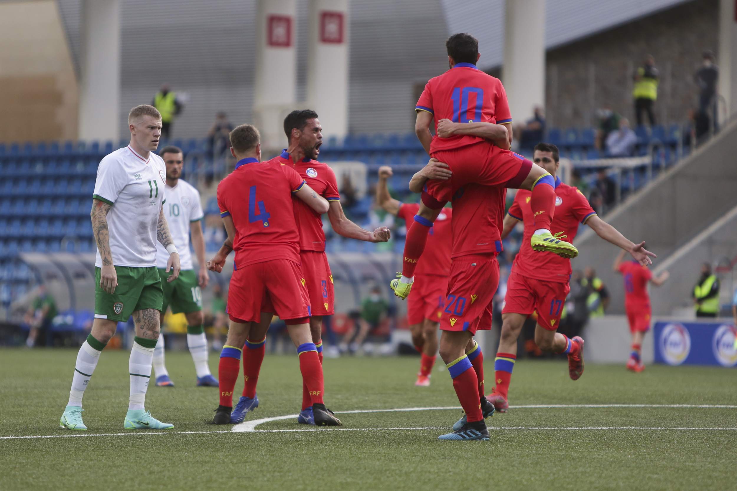 Només van passar vuit minuts de l’alegria d’obrir el marcador a la tristesa de la remuntada. Poc va durar l’eufòria a la selecció d’Andorra. Al minut 52, Marc Vales va marcar l’1 a 0 de cap, però la República d’Irlanda va capgirar l’electrònic al minut 60 amb dos gols del davanter del Tottenham Hotspur U23 que va estar cedit a l’Ipswich Town, Troy Parrott, que només té 19 anys. A partir de llavors, el combinat dirigit per Stephen Kenny va passar per sobre d’una selecció que només va aguantar fins al gol de Marc Vales i després es va desfer com un terròs de sucre. Els de Koldo Alvarez de Eulate van perdre 1 a 4 en el primer dels dos amistosos per preparar el Premundial, en el qual es va comptar amb Ilde Lima després del veto al qual el va sotmetre la Federació Andorrana de Futbol.