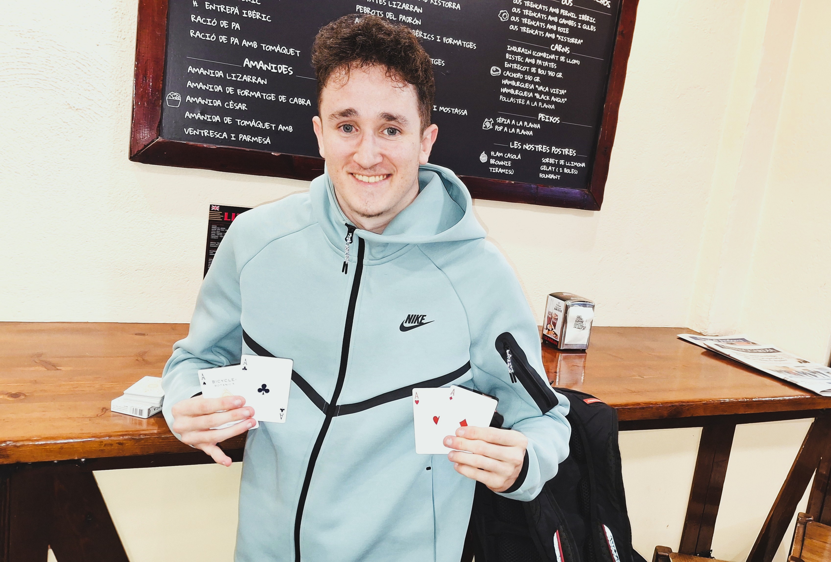 La carta que viatja, que és un que acostumo a fer i la gent es queda bastant parada. Primer et faig escollir un dels asos. Ja veuràs, escull-ne un.