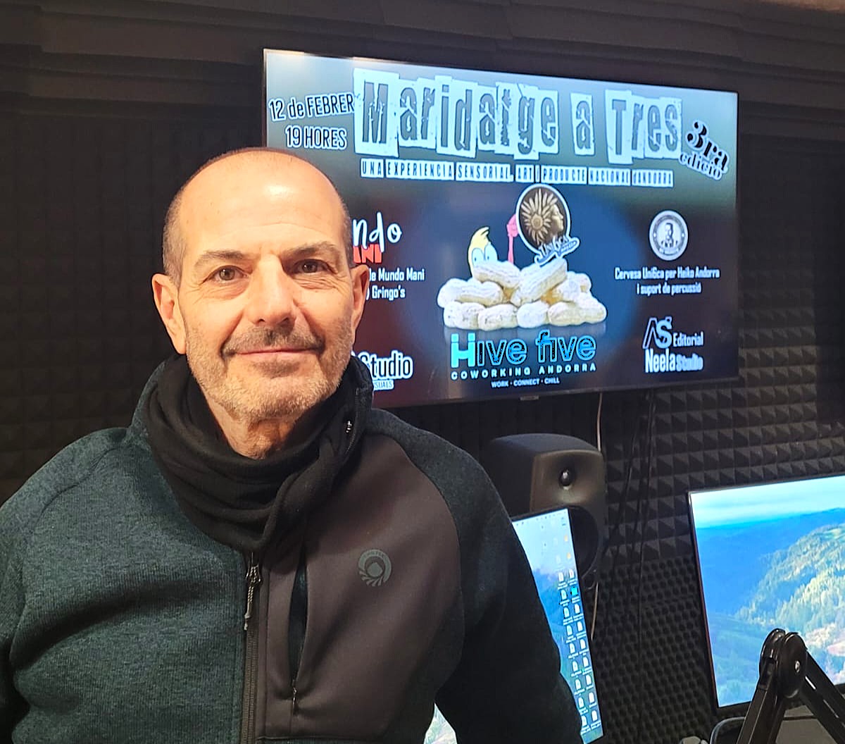 Sergio Zamora, actor de doblatge i director de Neela Studios, presenta avui al Hive Five la 3a edició de Maridatge a tres, una experiència sensorial que combina art i productes d’Andorra, la qual cosa aporta una manera diferent de fer presentacions.