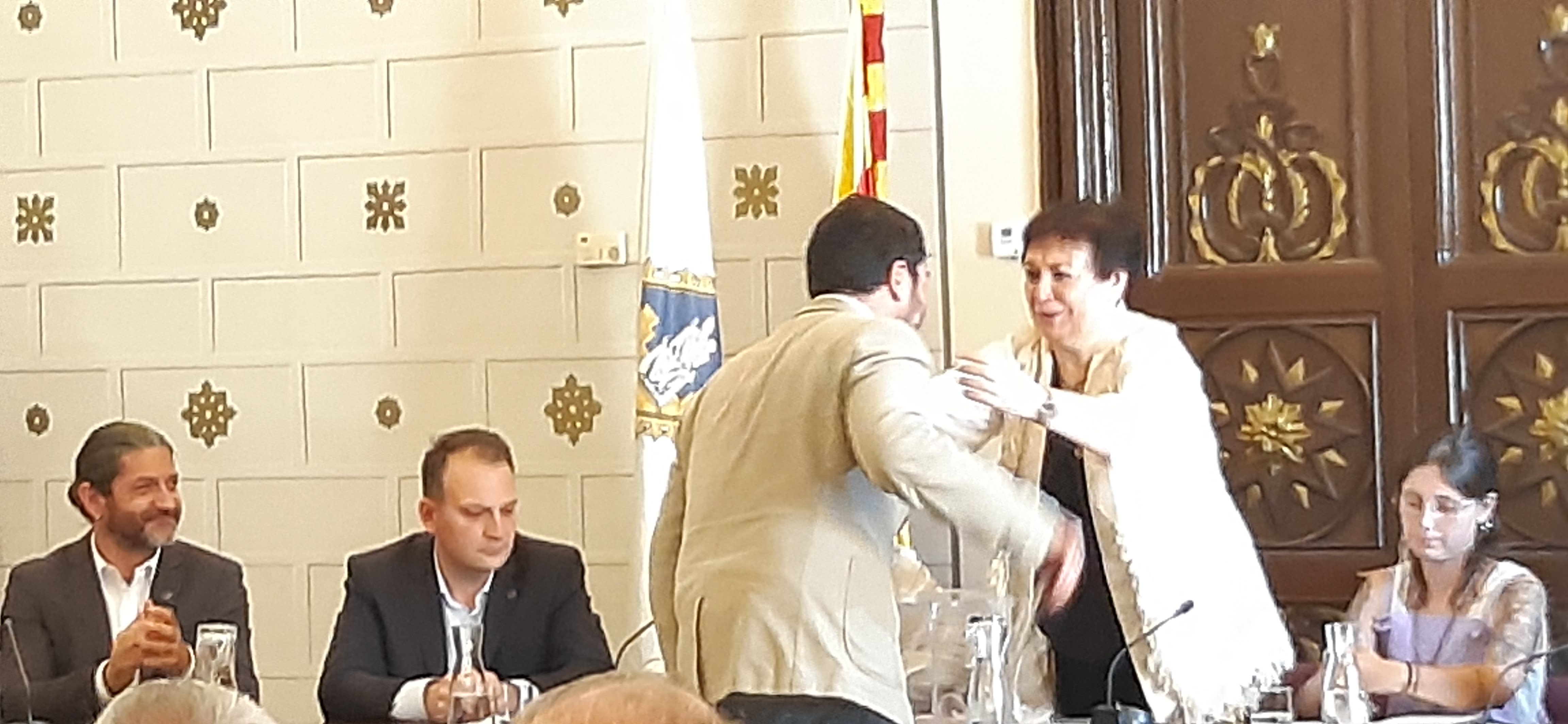 I per acabar, una mica més d'emoció, amb el lliurament de detalls als regidors sortints: Mireia Font i Joan Gurrera, Carlos Guàrdia, l'Òscar Ordeig que va encarrilar Barrera a l'alcaldia amb la seva marxa, un Àngel Rubio que marcava distància física amb el grup que va abandonar i la (sonora?) absència de Carlota Valls. Després, i abans de la foto de família a la porta del consistori –la CUP puny en alt-, corrillos, abraçades i petons a dojo. Entre l'assistència, els exalcaldes Gallart, Ganyet, Ausàs i Batalla. En un apart enmig de la confusió, Ordeig i Jordi Nadal: superat aquest tràmit, les negociacions pel Consell Comarcal entraran en el punt àlgid. Així que... necessàriament continuarà.
