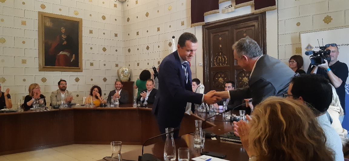Palesa novament era l'emoció –o la impaciència- de Gómez, que anunciava la presa de possessió de l'alcaldia. Abans cal fer la votació, li havien de puntualitzar. Estava tot lligat o algú es despenjaria? De l'urna va sortir la confirmació que, efectivament, Barrera assolia el bastó sense entrebancs. Que no sense advertències. "Canvia l'alcalde, però les polítiques seran les mateixes", arrencava Lavaquiol, desgranant els problemes més urgents, entre els quals l'habitatge, és clar: "Tenim gent buscant-lo al càmping Gran Sol". També alertava sobre la gentrificació de Canonges: que no pateixi el mateix procés que el Portal de l'Àngel barceloní, citava a tall d'exemple. Després s'embarcava (oportunament, en un ple d'investidura?) en una diatriba sobre fake news i un diari digital de la ciutat. "I per molt que Joan Barrera digui que no hi té res a veure, jo en tinc dubtes". Amb tot, en les polítiques municipals confiava que "amb un govern que està en minoria confiem que serà la nostra oportunitat d'influir i segur que ens hi entendrem".