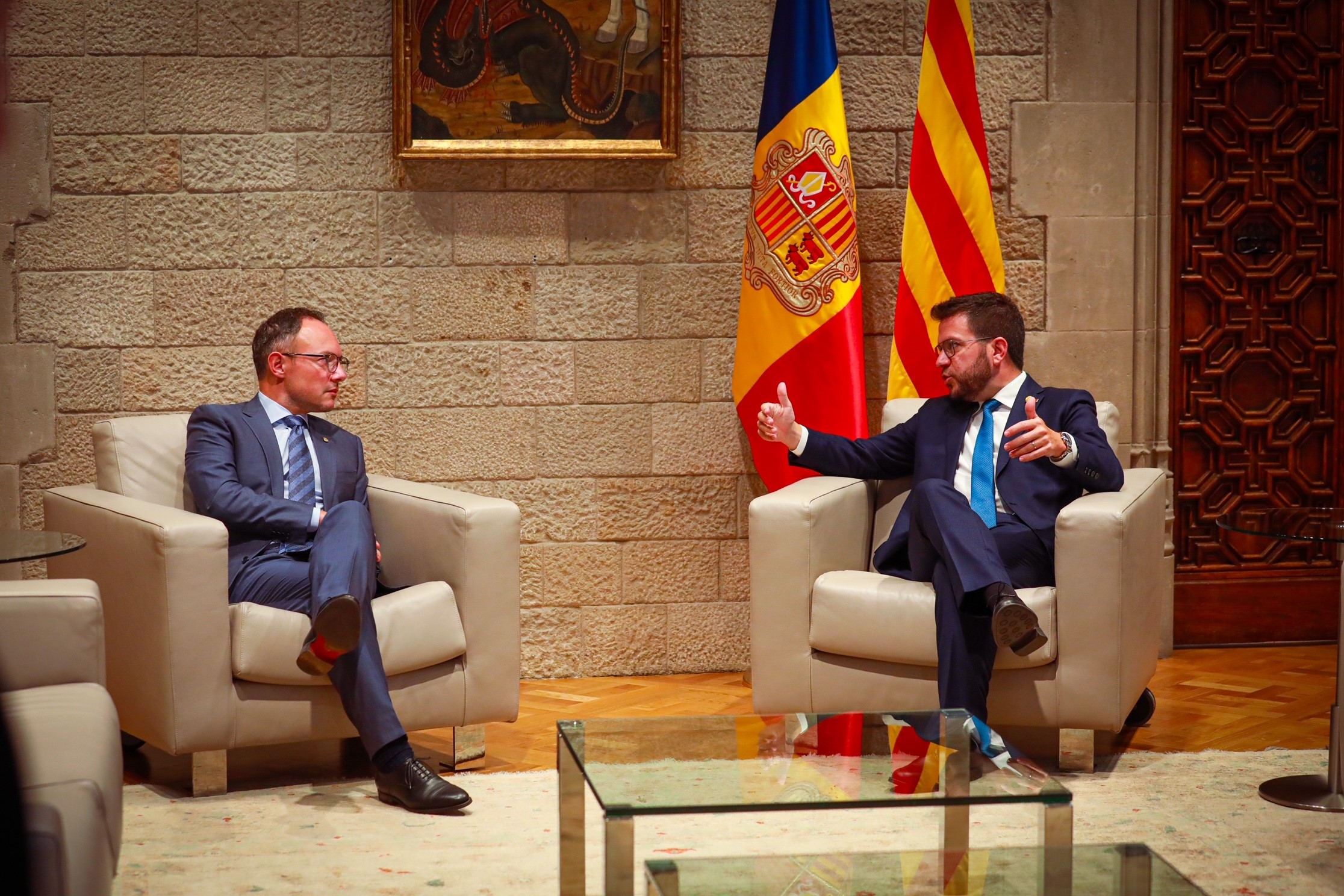 El president de la Generalitat, Pere Aragonès, va rebre ahir el cap de Govern, Xavier Espot, a la seu del govern català, en la que va ser la tercera trobada al més alt nivell entre Andorra i Catalunya des que ara fa dos anys es van institucionalitzar aquests contactes amb la voluntat d’abordar afers bilaterals i de col·laboració entre els dos territoris i de desplegar “completament” l’acord de cooperació entre els dos executius de l’any 2009.