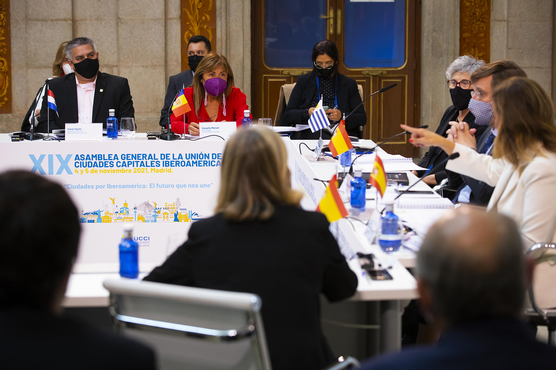 La cònsol major, Conxita Marsol, ha estat l’encarregada d’obrir el diàleg d’alcaldes durant la XIX Assemblea General de la Unió de Ciutats Capitals Iberoamericanes que s’ha celebrat avui a la Casa de la Villa de Madrid. La trobada, que ha estat presidida per l’alcalde de Madrid i copresident de l’UCCI, José Luis Martínez-Almeida, ha comptat amb alcaldes i alts representants dels Governs Locals de les capitals de 22 països, com Lisboa, Bogotà, San Salvador, San Juan de Puerto Rico, San José, Lima o Santo Domingo. La sessió inaugural s’ha realitzat a la sala de plens de l’antic ajuntament de Madrid, i ha comptat amb la presència dels antics alcaldes –que alhora havien exercit com a presidents de l’UCCI- José María Álvarez del Manzano, Alberto Ruiz-Gallardón i Ana Botella.