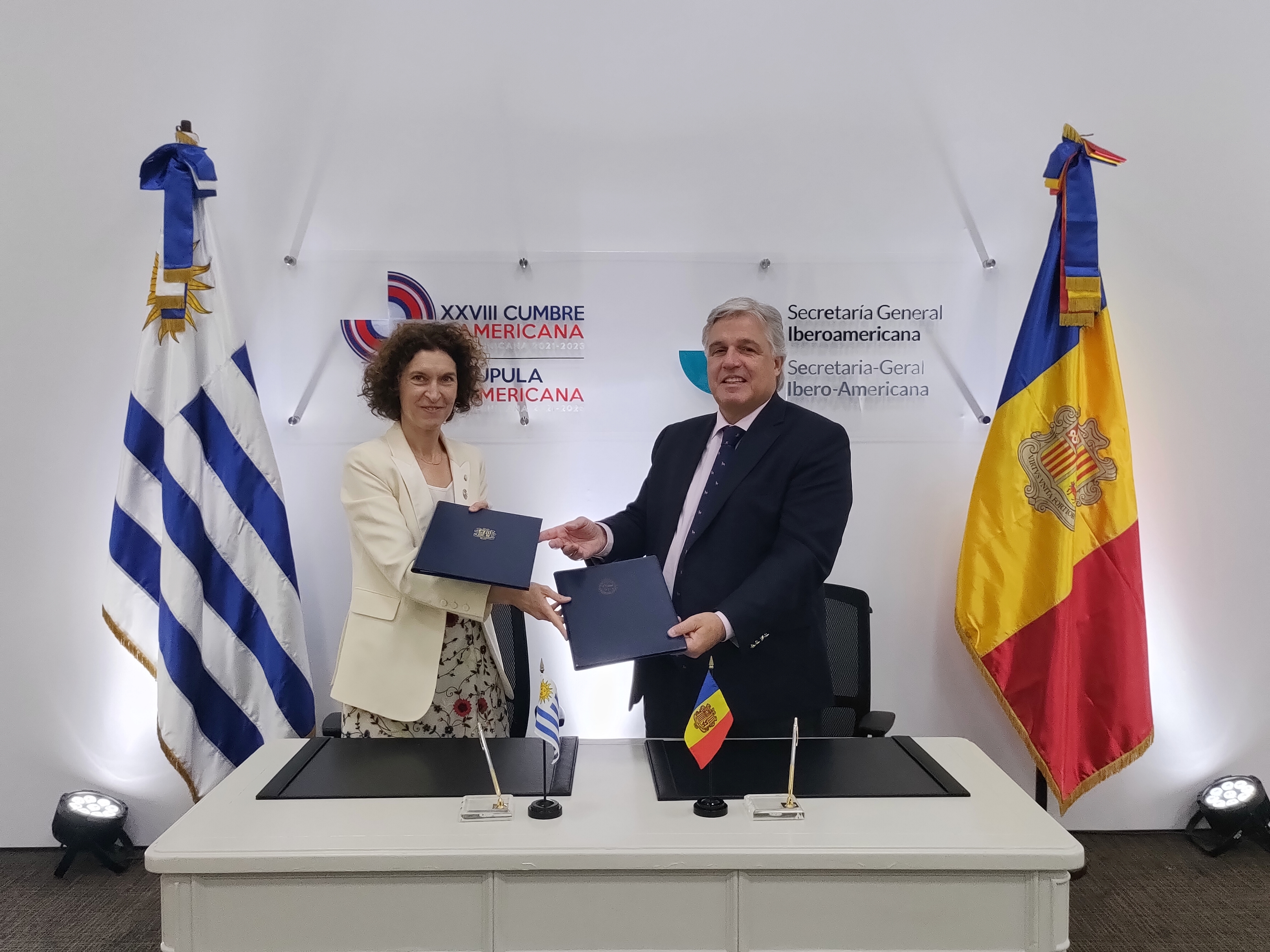 També divendres, la ministra es va reunir amb el seu homòleg de l’Uruguai, Francisco Bustillo, amb qui va signar el Protocol d’entesa sobre consultes polítiques entre el Ministeri d’Afers Exteriors del Principat d’Andorra i el Ministeri de Relacions Exteriors de la República Oriental de l’Uruguai. De la mateixa manera que el text amb Guatemala, aquest document permetrà dinamitzar l’actual contacte entre ambdós països. Així doncs, la finalitat és formalitzar la voluntat d’establir reunions i consultes de manera periòdica per revisar tots els aspectes de les relacions bilaterals i per intercanviar punts de vista sobre qüestions internacionals i regionals d’interès comú.