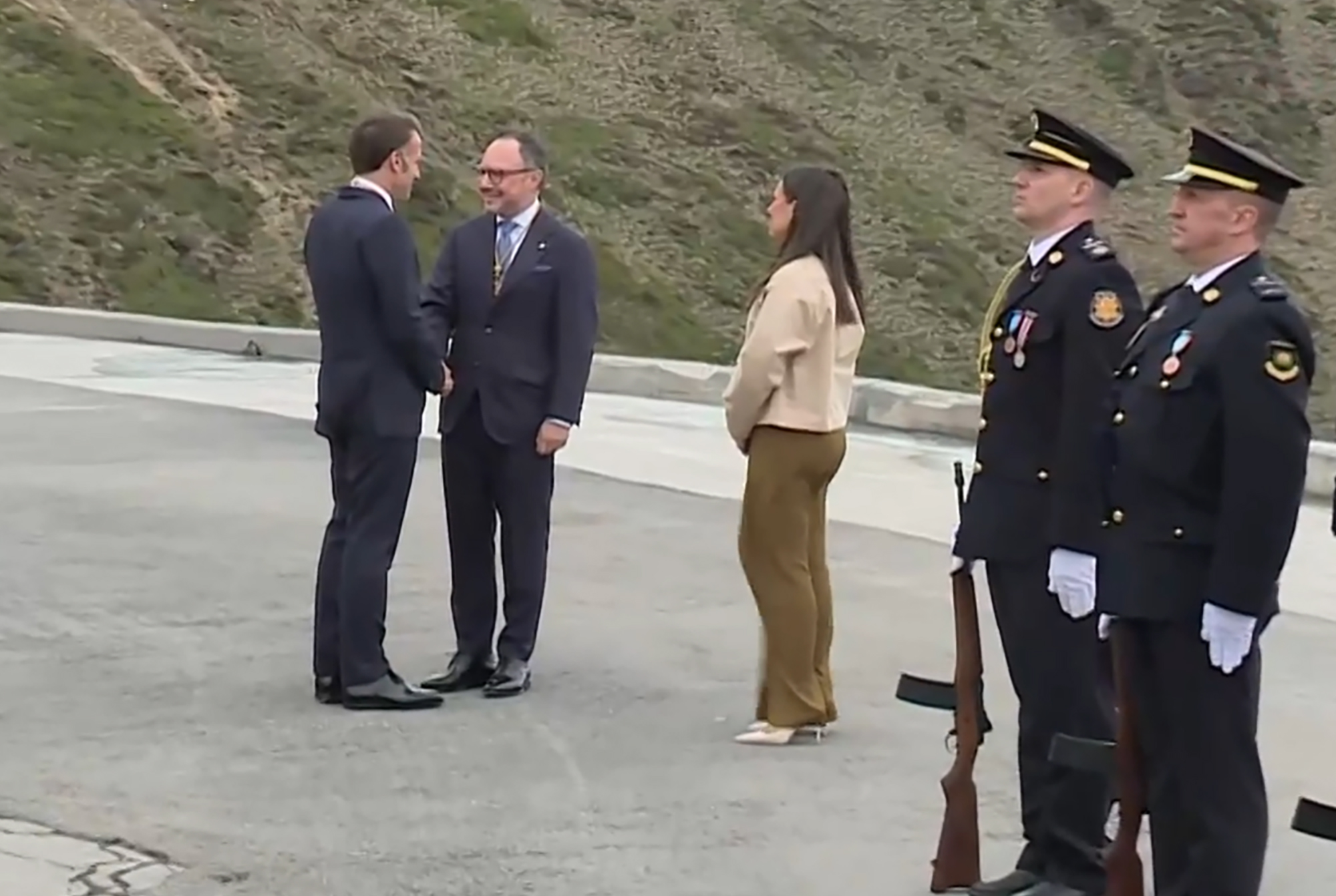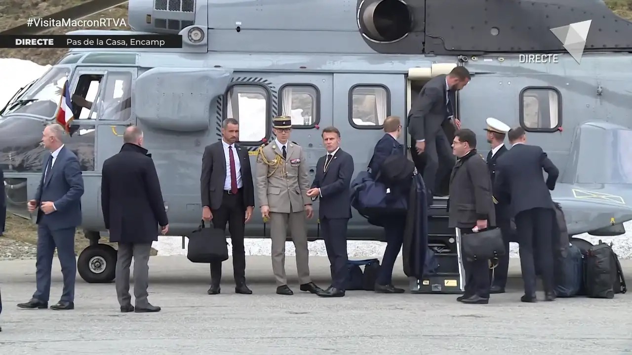 El copríncep francès, Emmanuel Macron, es troba ja al Principat, on ha arribat quan passaven deu minuts de les quatre de la tarda en helicòpter al trampolí del Pas de la Casa, on l'esperaven el cap de Govern, Xavier Espot, i la cònsol major d'Encamp, Laura Mas.