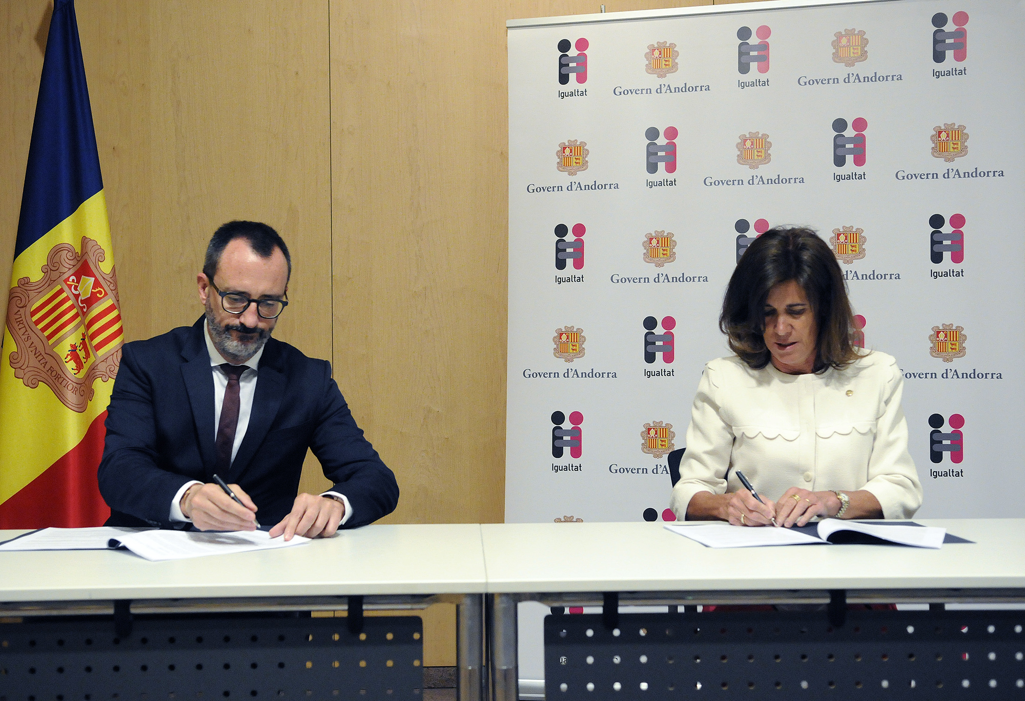 També ahir al migdia Filloy i la presidenta d’Acció Feminista d’Andorra (AFA), Antònia Escoda, van signar un protocol de col·laboració “per formalitzar les relacions d’aquesta entitat amb el departament de polítiques d’Igualtat”, va subratllar el ministre. Segons Escoda, a l’associació els arriben preguntes i consultes sobre situacions de violència contra les dones que deriven després a l’àrea de Polítiques d’Igualtat i amb la signatura del protocol s’oficialitza aquest circuit de derivació i per dur a terme possibles projectes de manera conjunta. Preguntada sobre l’augment de casos de violència de gènere denunciats durant el confinament, Escoda va reiterar que es tracta d’un període que ha fet aflorar aquest tipus de casos.