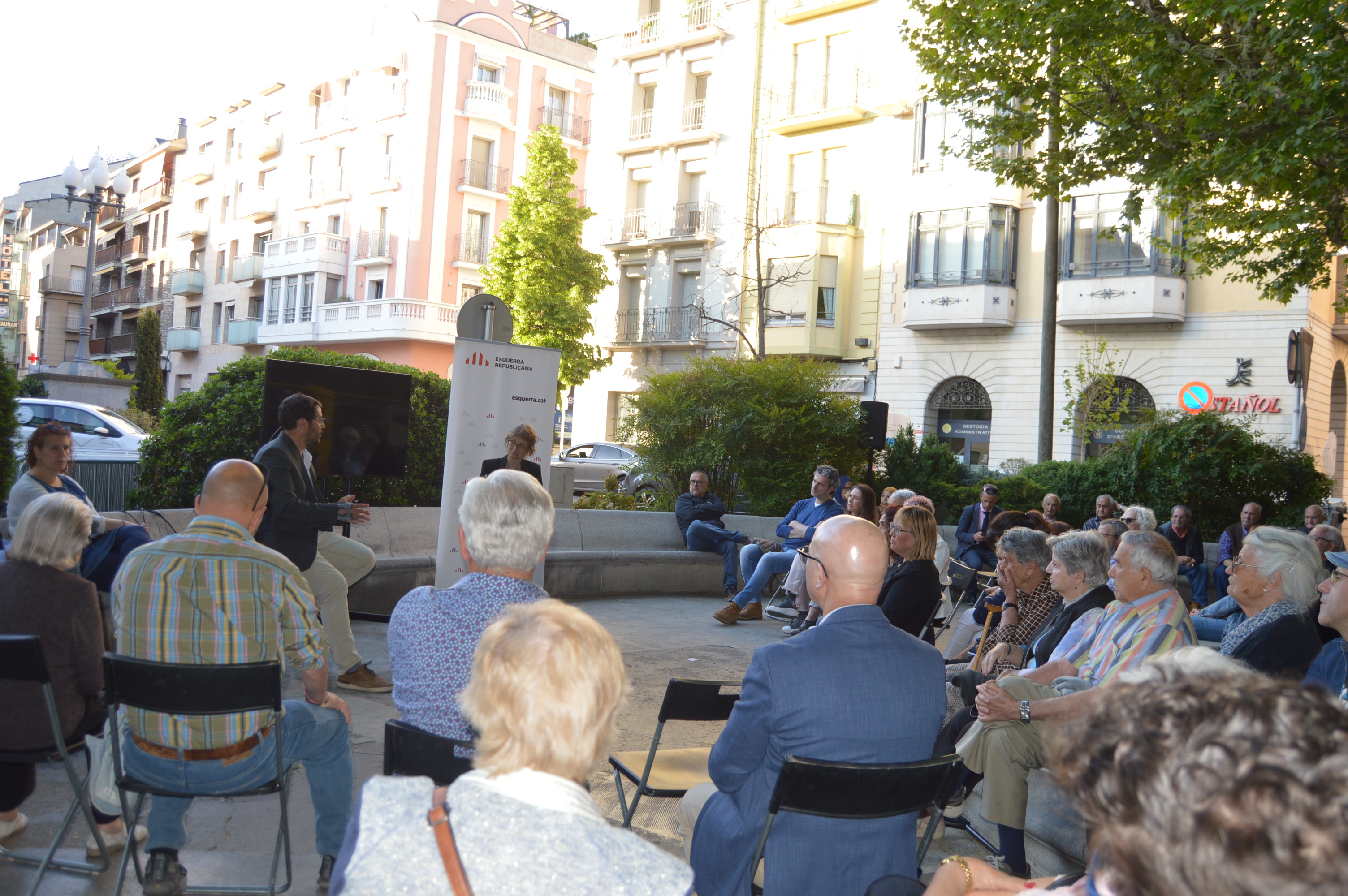 Quedem a la font del passeig. Això es diuen centenars de cops al dia les gents de la Seu. Aquest ha estat el punt triat també per Francesc Viaplana per fer la presentació pública de la seva candidatura a l’alcaldia de la Seu. Format diàleg amb Meritxell Serret, consellera d’Acció Exterior de la Generalitat, que completava així el dia iniciat a Andorra donant carta de naturalesa a la delegació del govern català a Andorra. Uns metres passeig avall, al pati de la biblioteca Sant Agustí, presentació de la llista de Junts. Els de Jordi Fàbrega optaven per un acte quasi quasi a l’americana, sense globus grocs enlairant-se però amb música dinàmica de fons i ambient festiu. Gent? Empatats, si fa no fa: no ens servirà com a indici per iniciar les travesses.