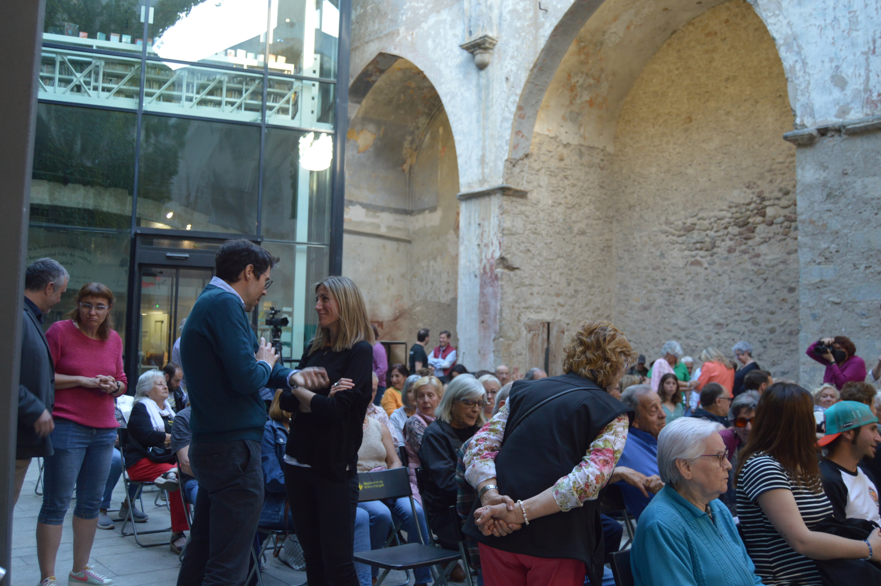 Joan Gurrera passa en direcció a Sant Agustí: l’acte de Junts comença una hora més tard, a les vuit. Entre els que han vingut a donar-hi suport, l’exalcalde Albert Batalla. Tot just abans que comencin les intervencions apareix Joan Barrera, el candidat de Compromís, amb posat de col·legial assenyat, cartera a l’espatlla. Lluny de córrer la sang, entra al pati de la biblioteca i saluda amistosament Jordi Fàbrega i altres candidats. Uns minuts. De passada ens explica que l’acte de la plataforma que lidera el tenen previst per al proper dia 21. La CUP, recordem, ja va fer el seu, també en ambient molt festiu: un vermut musical durant el matí de Sant Jordi.
