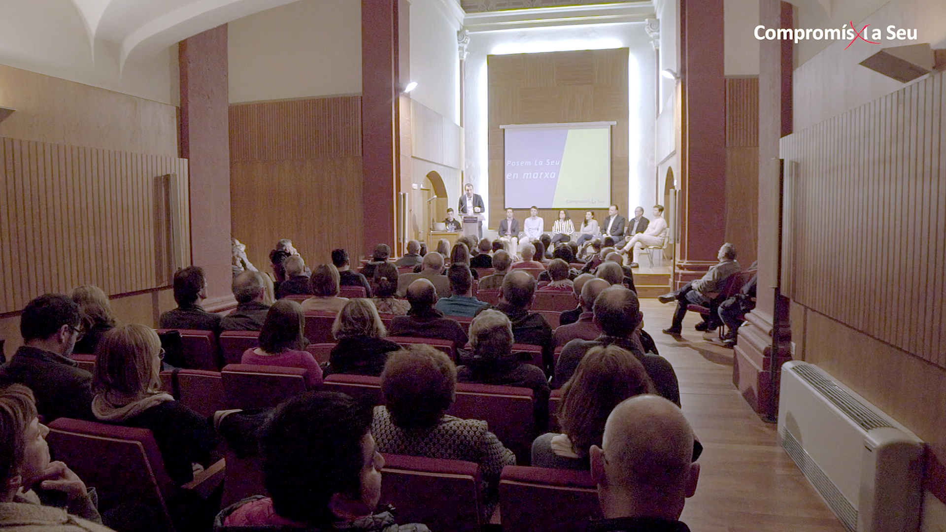 El candidat a l’alcaldia per Compromís x la Seu va desgranar dimarts un seguit de propostes per “posar la Seu en marxa”, davant d’un auditori de més de cent persones a la capella de les monges (Sala Immaculada), on hi havia la presència de representants de diferents formacions polítiques, des del PP, als Comuns, Podemos i ERC. Òscar Ordeig va fer una crida a liderar des de la Seu les polítiques de muntanya i contra el despoblament al món rural, davant les instàncies europees, estatals i de la Generalitat. “Recuperarem capitalitat a la Seu si sabem ser motor dinamitzador de l’economia al Pirineu i líders de les noves polítiques de muntanya”, va afirmar.