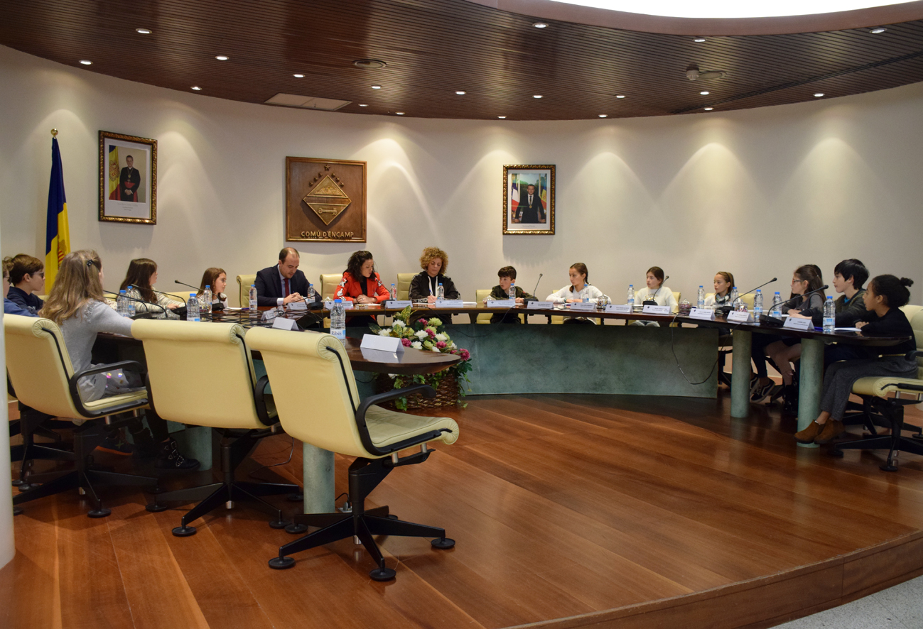 Les portes de la sala del consell de comú d’Encamp s'han tornat a obrir per als escolars de la parròquia. Els catorze estudiants de primària de les escoles andorrana i francesa del poble d’Encamp i del Pas de la Casa s’han assegut a les cadires que habitualment ocupen els consellers. La d’aquest dimarts ha estat la quarta edició del Consell d’infants, promogut per Unicef i que busca facilitar el dret a la participació als infants. En la primera sessió, s’han nomenat als consellers i conselleres que durant aquest curs treballaran propostes per millorar la qualitat de vida a la parròquia.