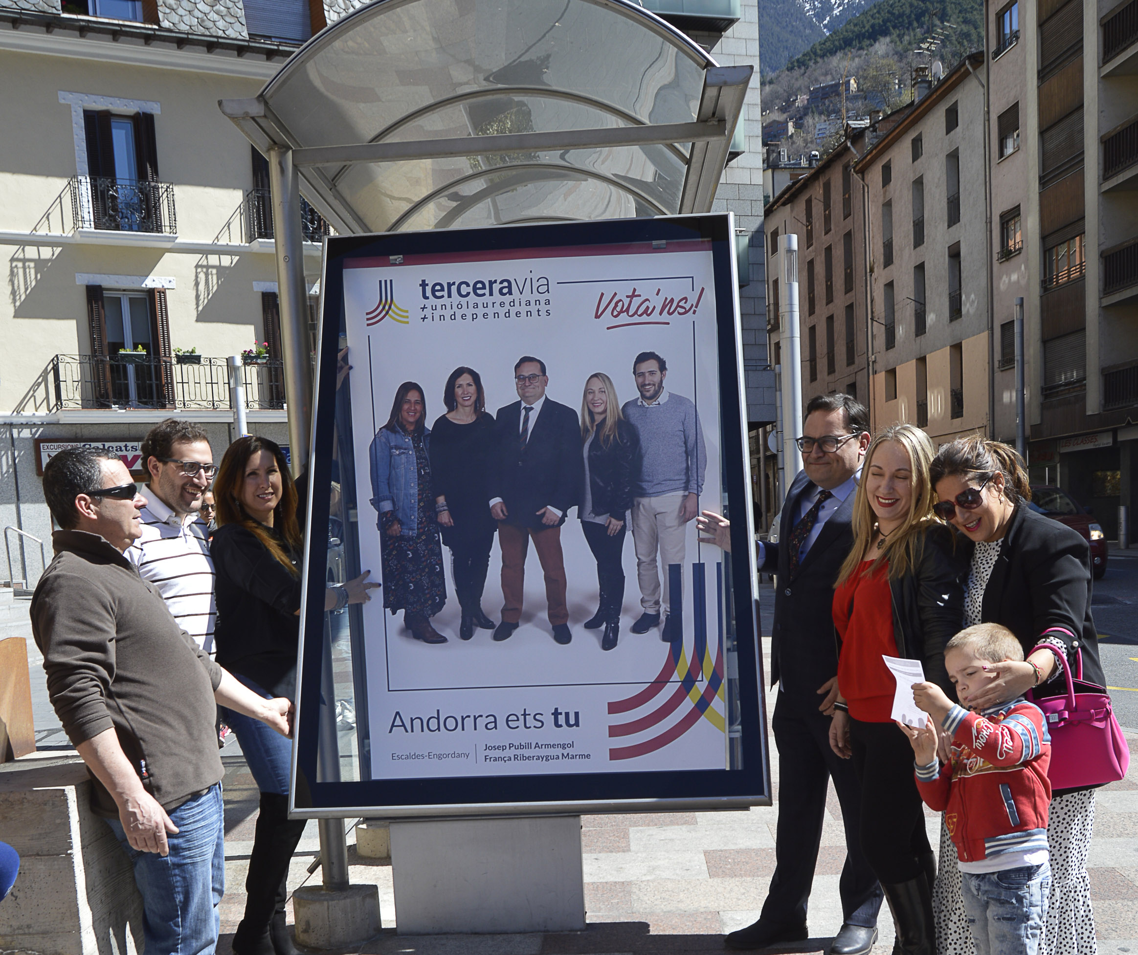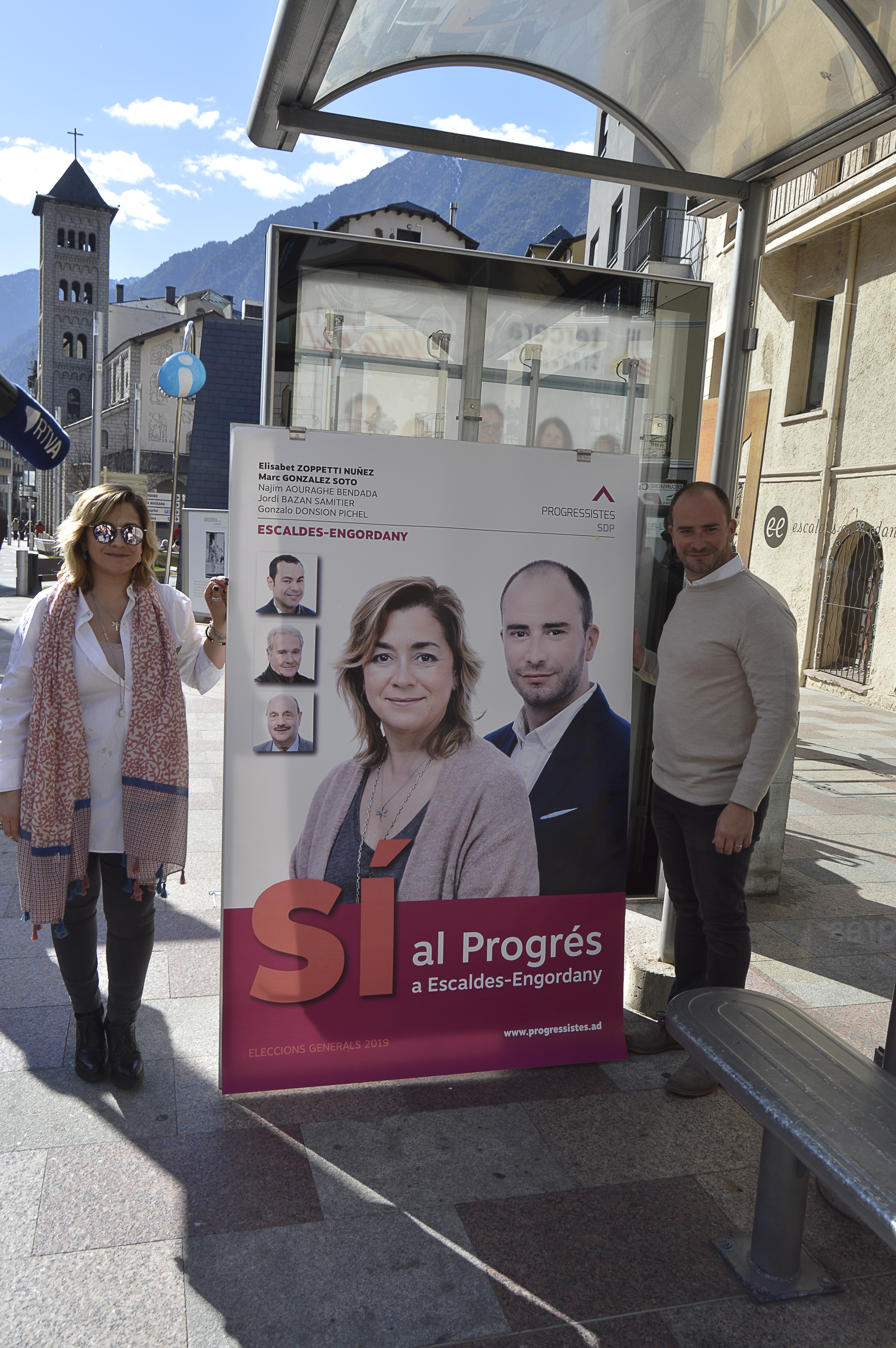 Els següents a penjar els cartells van ser els candidats de Progressistes-SDP, Elisabet Zoppetti i Marc González, que van estar acompanyats per la plana major del partit. Zoppetti encapçala un projecte “pensat per als ciutadans” i que posa especial èmfasi “en la part social”. “Si la gent millora, el país millorarà”, va deduir. En aquest sentit, creu que la gent gran de la parròquia està “oblidada” perquè “falta alguna infraestructura” per a aquest col·lectiu. A més, creu que una assignatura pendent és “revitalitzar la part alta”.
