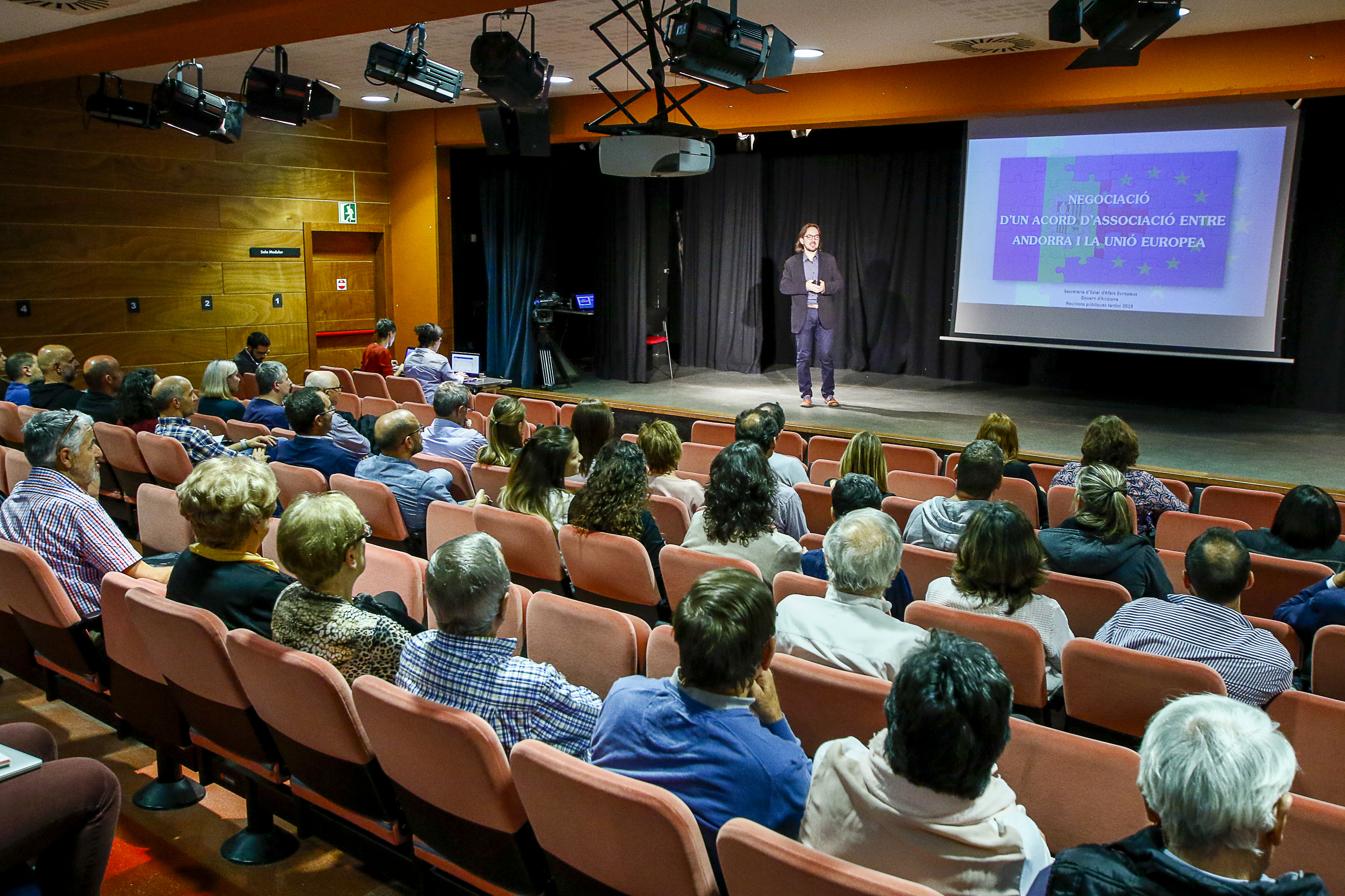 A preguntes del públic també va explicar que l’acord d’associació té un impacte lleu en els comuns. Així, va dir que aquestes institucions potser tindran més feina en les etapes de la negociació que en la fase d’implementació. Amb tot, l’acord obrirà la possibilitat que aquestes institucions puguin col·laborar amb altres actors regionals o comarcals en projectes d’interès comú. A l’últim, Riba va apuntar que falten poc més de dos anys per tancar un text que posteriorment es portarà a referèndum. Entre els assistents es va demanar si seria obert als residents i el secretari d’Estat va indicar que si el que es fa és un referèndum només hi podran participar els nacionals andorrans.