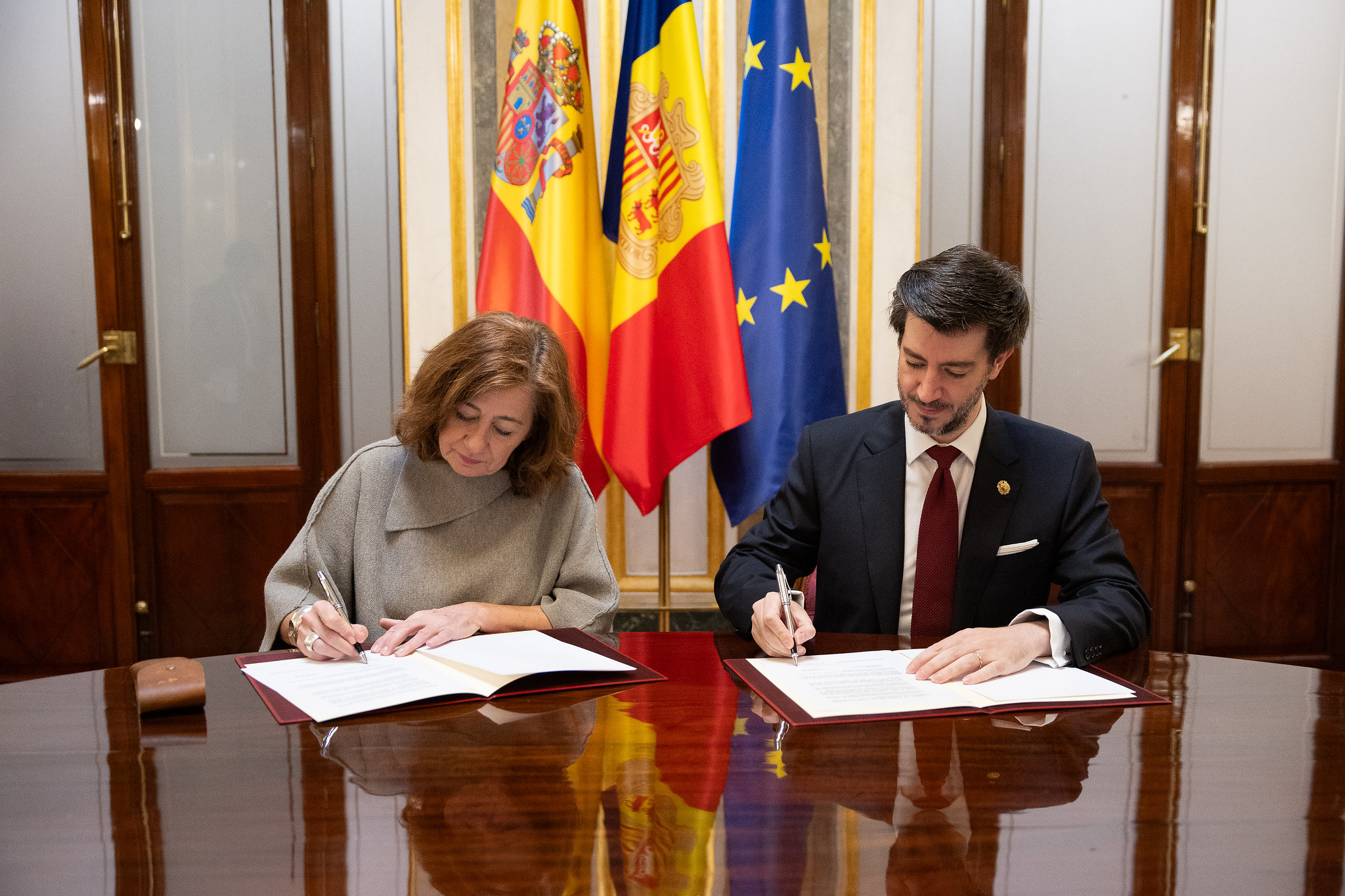 El síndic general, Carles Ensenyat, i la presidenta del Congrés espanyol, Francina Armengol, han signat, aquest dilluns al matí a Madrid, el Memoràndum de cooperació interparlamentària entre el Consell General i el Congrés dels Diputats.