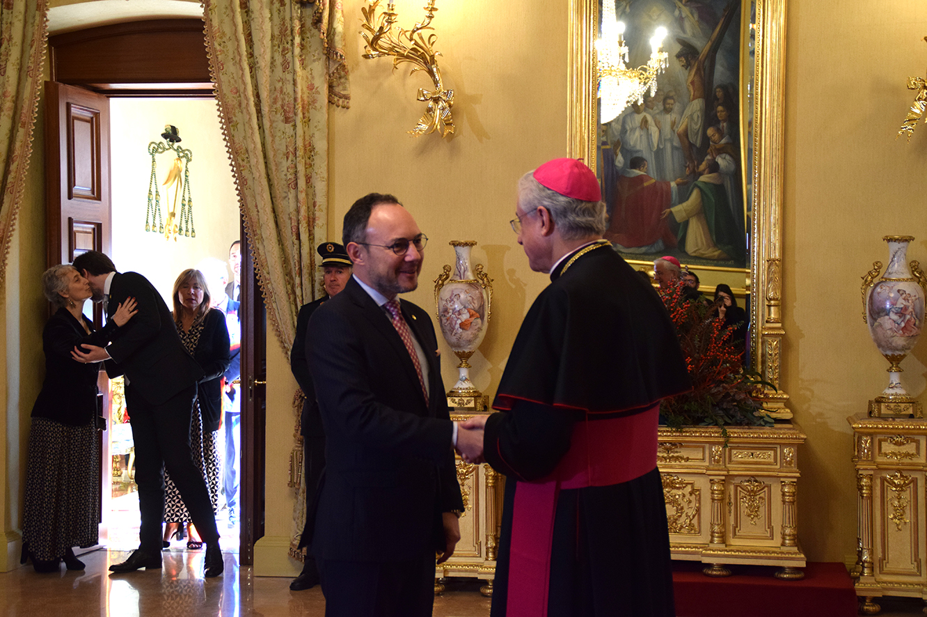 “Celebro la conclusió de les negociacions de l’Acord d’Associació entre Andorra i la Unió Europea”, que “s’han pogut cloure amb èxit i aprofitant un moment polític que podríem qualificar d’únic i irrepetible, i permetran tenir més a prop l’objectiu de fer d’Andorra un país més resilient i més sostenible”. Clar i català, el suport expressat per l’arquebisbe i copríncep Joan-Enric Vives, que semblaria inclús haver encetat així la campanya en favor del sí al futur referèndum. Això en el parlament de la tradicional recepció a les autoritats andorranes. “Expresso el desig, i ho demano al Govern i al conjunt de les forces polítiques que avui esteu aquí representades, que sapigueu apropar a la ciutadania d’Andorra la importància del moment que vivim i la transcendència de la decisió que caldrà prendre”, hi afegia. Ítem més: “No és el mateix manifestar, en un context internacional dinàmic i incert, que Andorra decideix ser un Estat associat a la Unió Europea que, per contra, decidir romandre un país tercer”. L’educació i, evidentment, l’habitatge, van ser les dues altres qüestions destacades pel copríncep episcopal. A banda d’encoratjar els cònsols electes, personificats en una molt somrient Laura Mas (per ordre protocol·lari hauria d’haver estat el canillenc Francesc Camp, però va delegar): una victòria tan aclaparadora la seva, en destacava, “que quasi no hi ha ni seients”.
