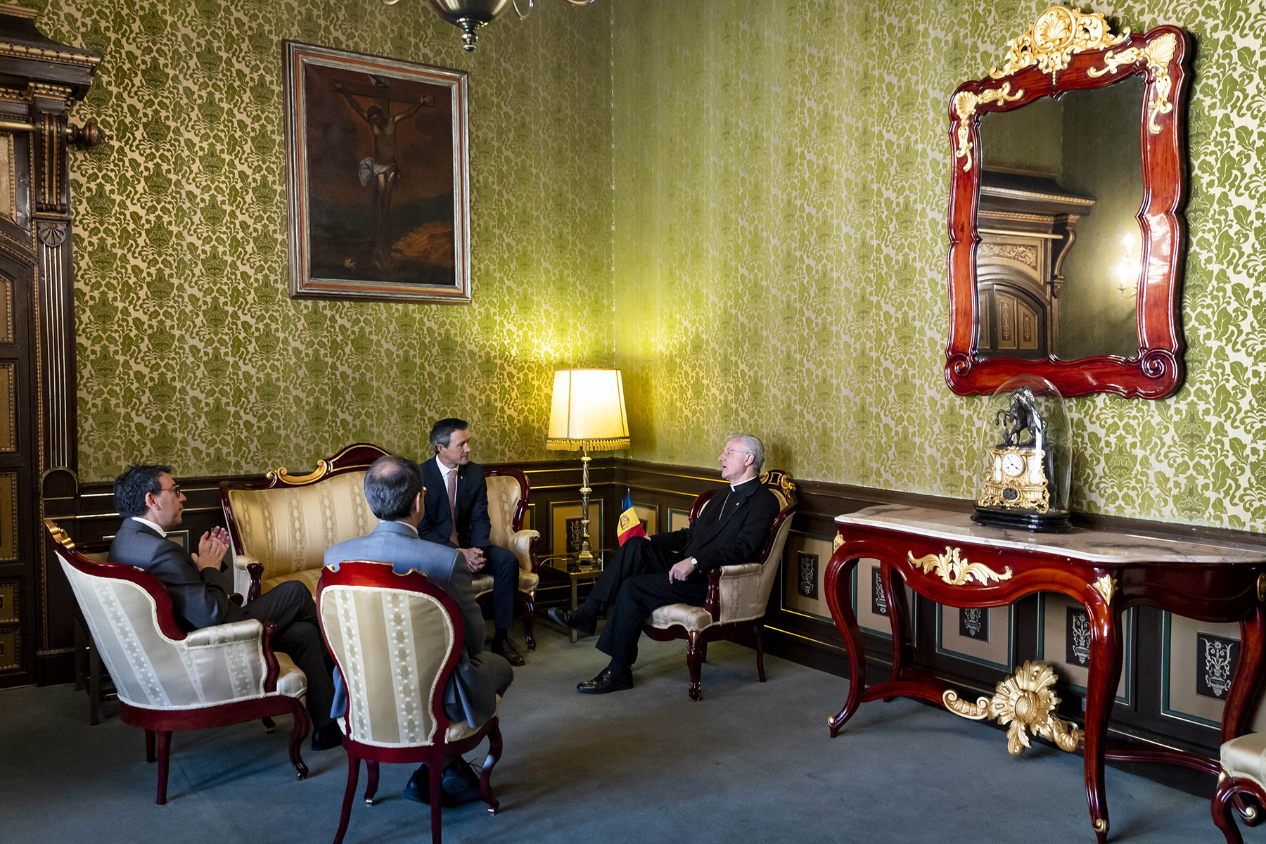 L’arquebisbe d’Urgell i copríncep episcopal, Joan-Enric Vives, ha rebut aquest matí la visita dels cònsols major i menor d’Andorra la Vella, David Astrié i Miquel Canturri, al Palau Episcopal de la Seu d’Urgell, en una trobada institucional que ha servit de presentació dels nous mandataris de la capital, després que Conxita Marsol hagués renunciat al consolat per presentar-se als comicis generals del passat 2 d’abril encapçalant la llista territorial de Demòcrates+Liberals a Andorra la Vella.