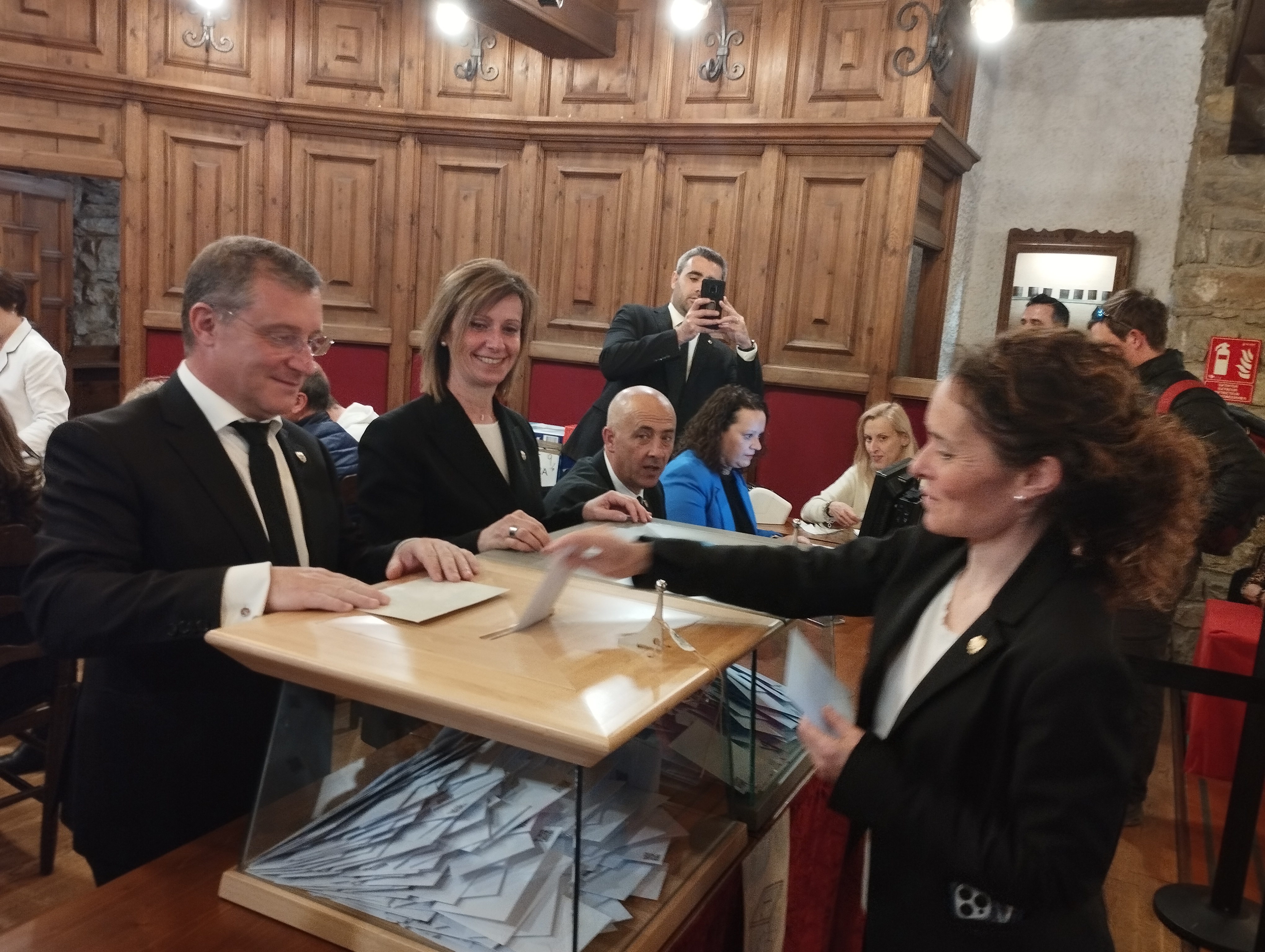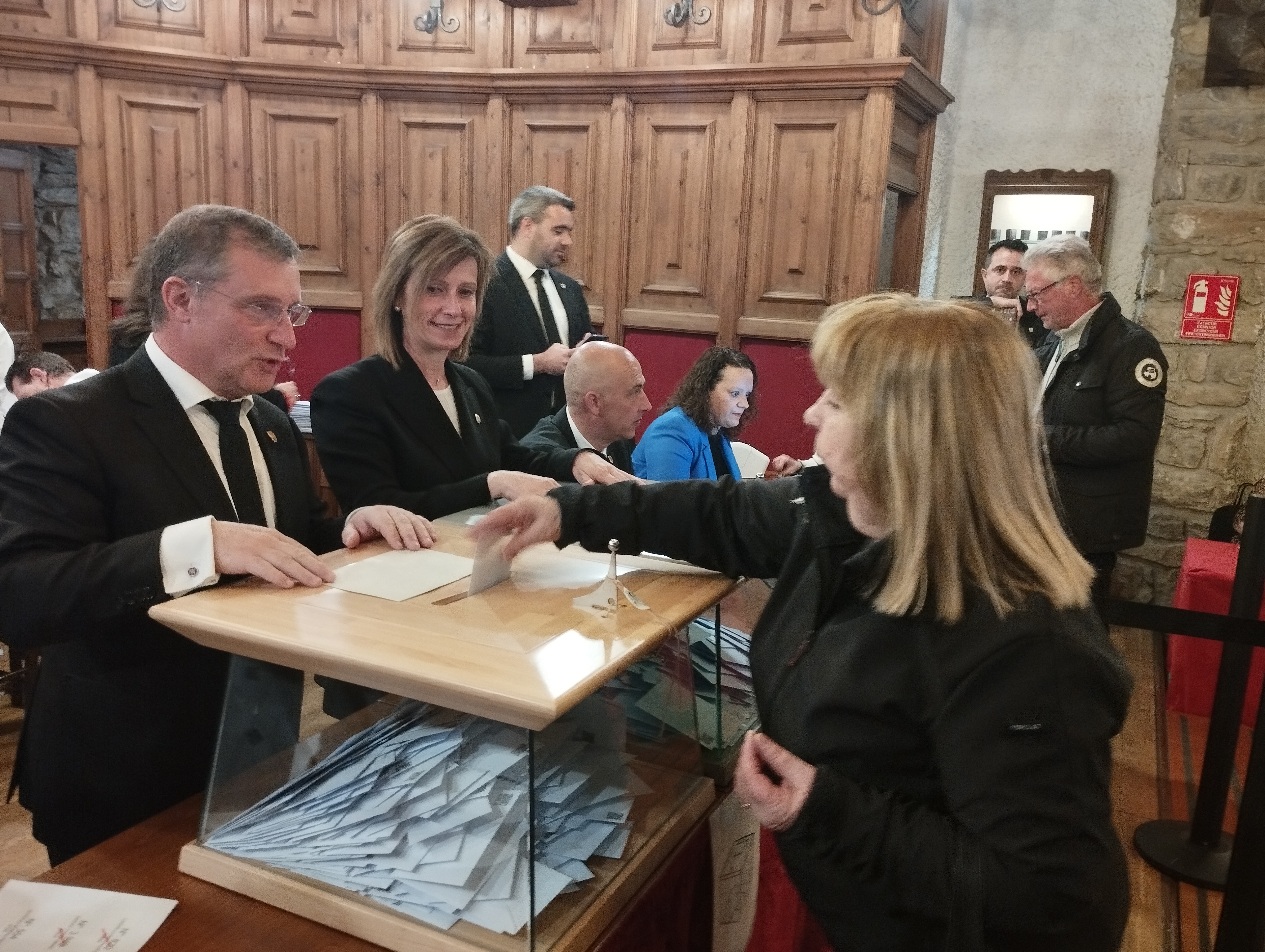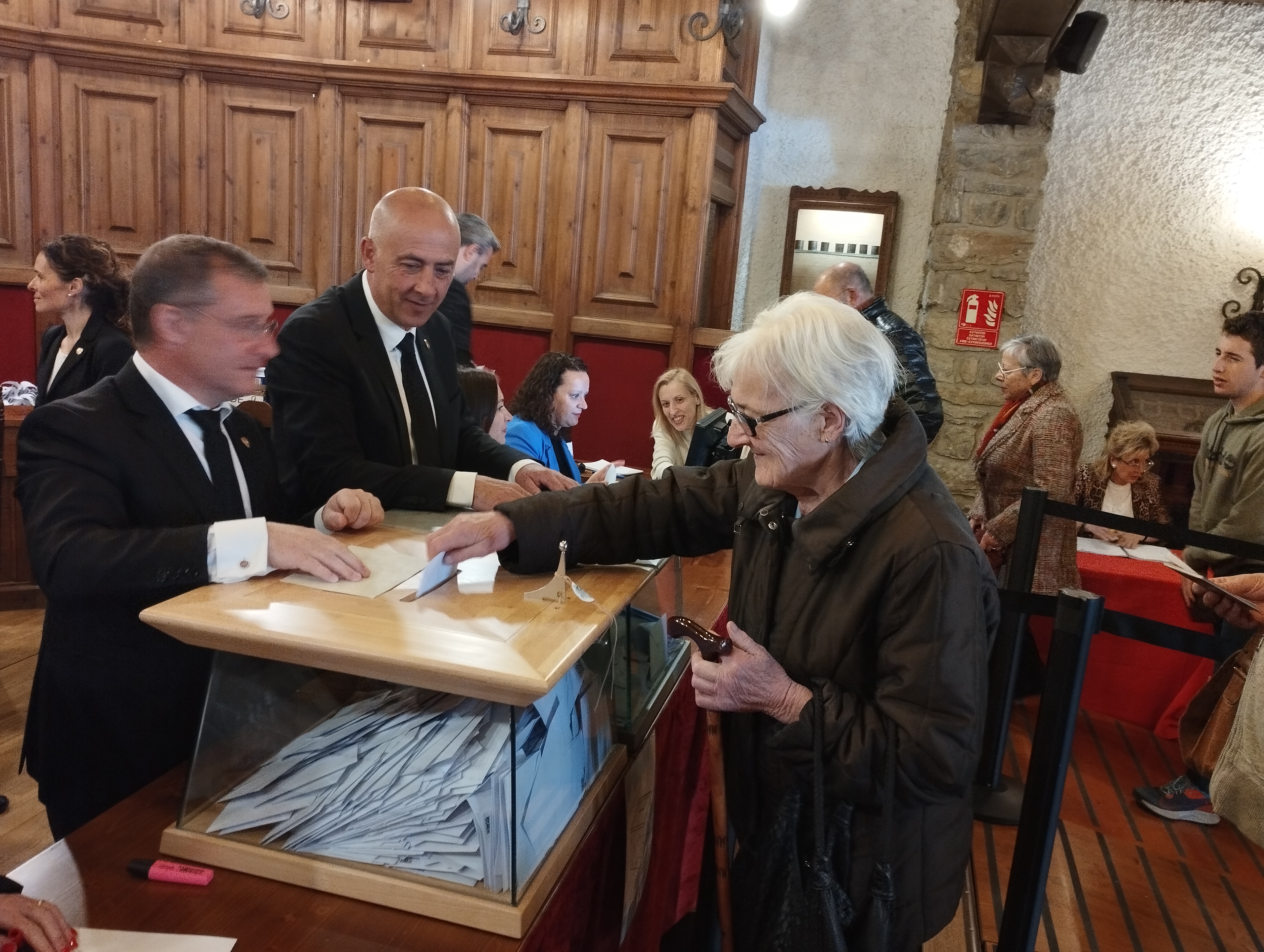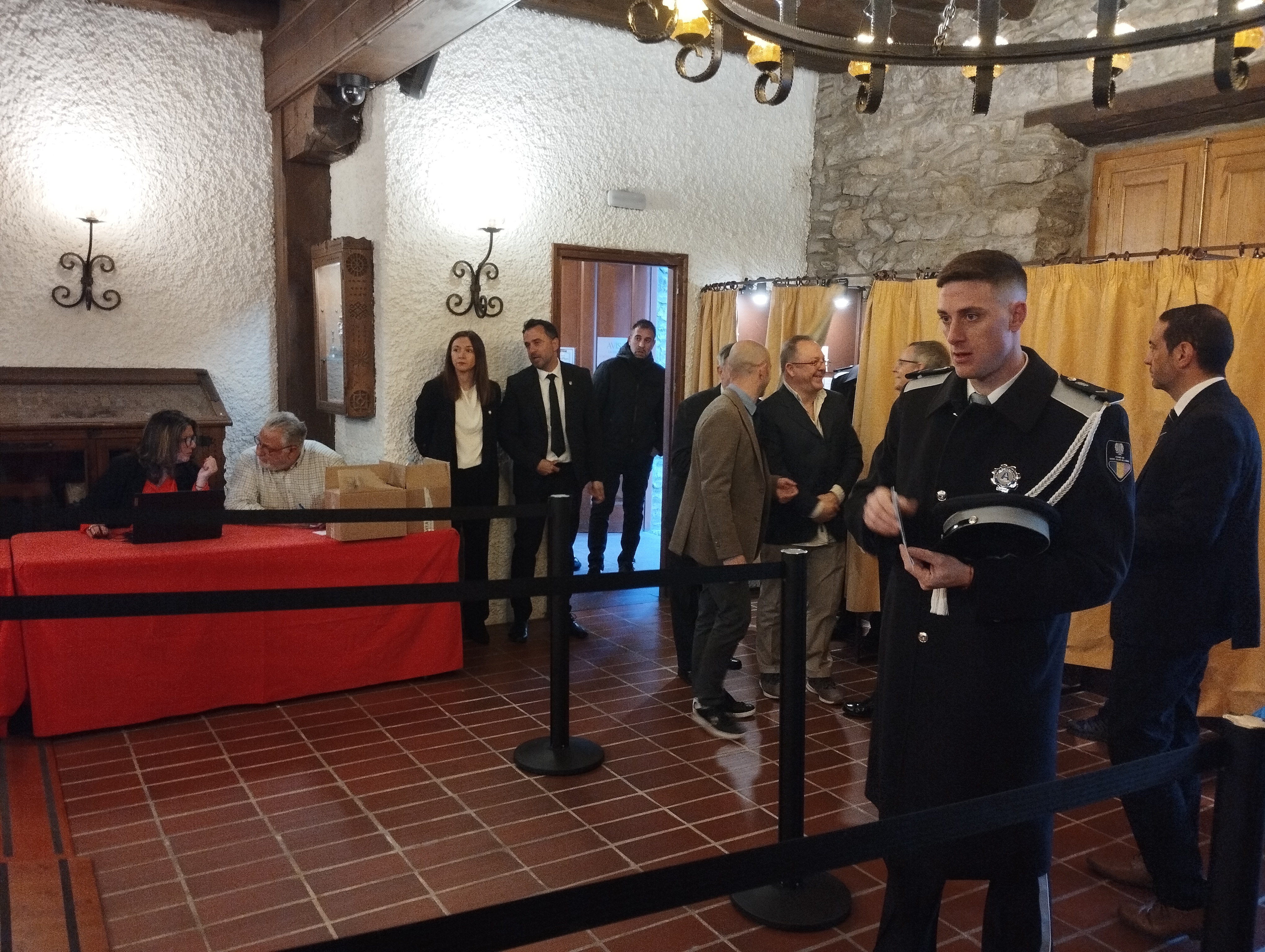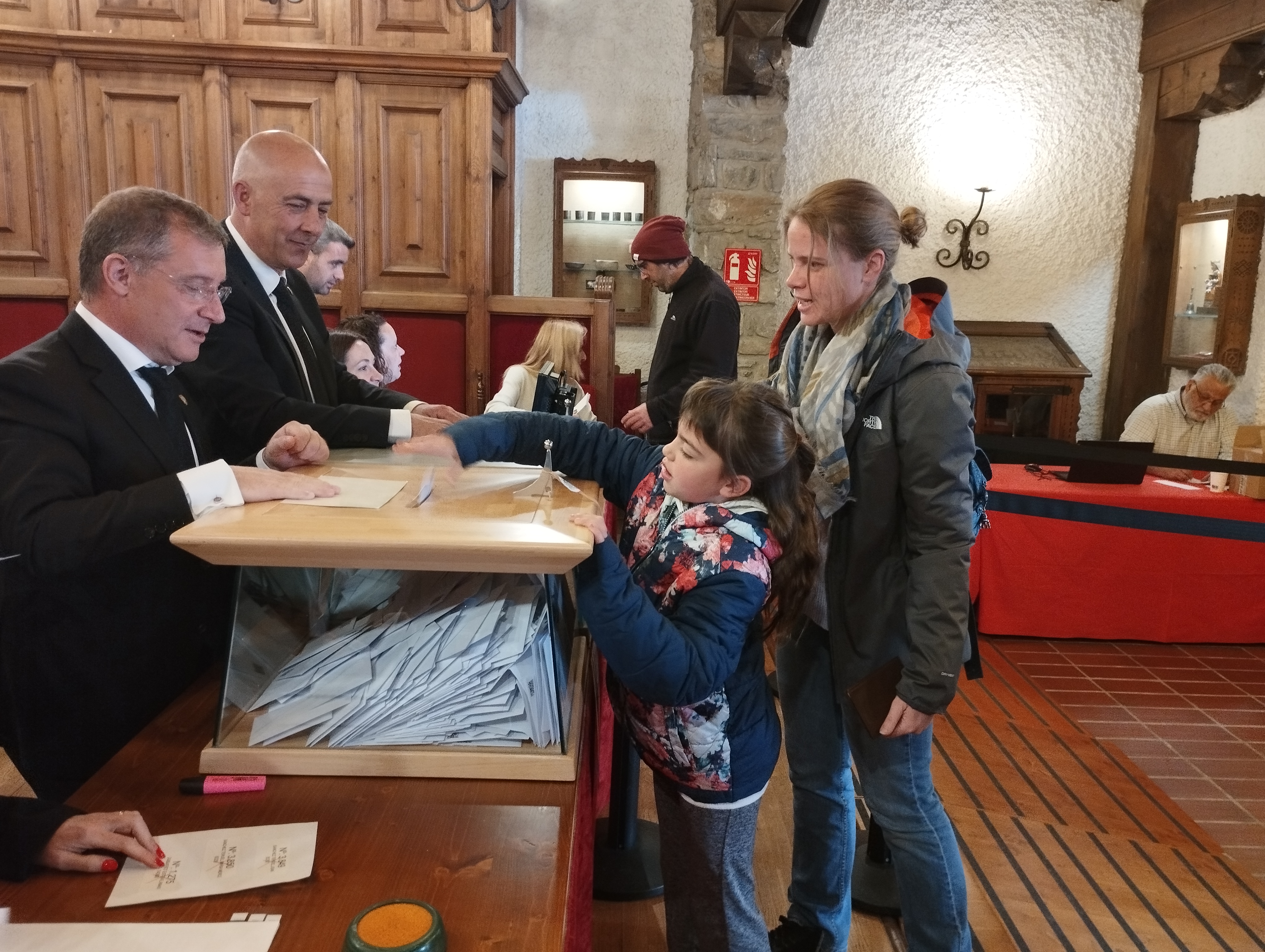 També han desfilat per l’antiga casa comuna uniformats com el Jordi, bomber, que ha aprofitat un forat del torn de guàrdia per acostar-se a votar; el David, agent del servei de circulació, amb el vestit de gala, plantat amb dos dels seus companys tot el matí a les portes del col·legi –“vigilem que no hi hagi incidència i també posem una mica d’imatge– i el Joan, d’Higiene, des de les 6 de la matinada al carrer: ha aprofitat el break d’esmorzar per anar votar. No hi han faltat els petits, com l’Antia, 8 anyets, que va dipositar el vot personalment a l’urna – “la portem des que era un bebè, com a mi em portaven els meus pares, crec que és bo que vegi el procés”, deia Anais, la mare–, ni tampoc veterans bregats en mil i una conteses electorals, com l’excap de Govern Albert Pintat: “Els pròxims anys seran molt importants, sí, però quan hi ha eleccions tendim a dramatitzar més del compte. Som un país acostumat a superar totes les crisis. N’hem vist de molt difícils i sempre ens hi hem sabut adaptar. Tenim la sort que el país creix, i per això tenim un problema amb l’habitatge. Imagini’s que fos al revés i que no hi hagués feina. Seria terrible. El que hem de fer és afrontar els problemes que tenim plantejats, tranquil·lament i amb gent preparada”.