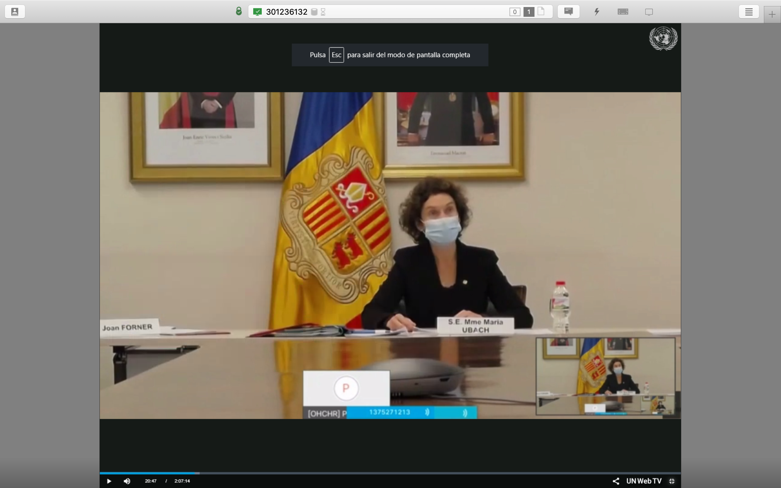 La intervenció d’Ubach, que ha començat amb retard per problemes tècnics, ha fet especial èmfasi en les actuacions impulsades pel Govern per mitigar els efectes de la crisi sanitària. També ha anunciat que pròximament s’acollirà la tercera família de persones refugiades, i que l’Executiu està treballant en un pla per lluitar contra el tràfic de persones encaminat, d’una banda, a la cooperació internacional en la matèria i, de l’altra, en la prevenció. La lluita contra el tràfic de persones ha centrat gran part de les recomanacions adreçades pels altres països a Andorra, així com la necessitat d’adoptar mesures per acabar amb la bretxa salarial entre homes i dones, avançar en les mesures contra la violència de gènere, i millorar els aspectes relatius als treballadors migrants amb l’aprovació del conveni que fa referència a aquesta qüestió.