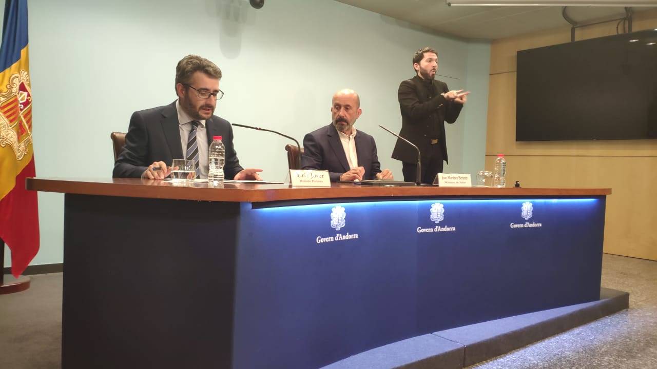 Els casos sospitosos de coronavirus pendents de confirmació a l'espera de les analítiques corresponents s'eleven ja a 26, 9 més dels que hi havia aquest migdia, mentre els contactes identificats amb un cert risc són ja 90. Així ho ha explicat aquest vespre el ministre de Salut, Joan Martínez Benazet, en la compareixença amb el titular de Finances i portaveu de l'executiu, Eric Jover, d'aquest vespre per fer el punt de la situació de l'epidèmia del Covid-19 al país.