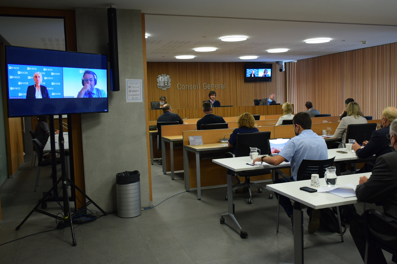 Els dos economistes de l'OCDE, Monika Queisser i Hervé Boulhol, van ser els experts en la matèria proposats pel Govern que van comparèixer ahir davant la comissió. De fet, el ministre de Finances, Eric Jover, va defensar la seva intervenció indicant que des de l'OCDE són "experts internacionals" en treballar les pensions, ja sigui amb treballs sobre el que està passant a nivell mundial com també amb estudis monogràfics a demanda dels països. Abans de la intervenció dels economistes, Jover, va voler deixar clar que no han vingut a fer propostes estrictes per al model andorrà sinó "a explicar-nos el que està passant a nivell mundial".