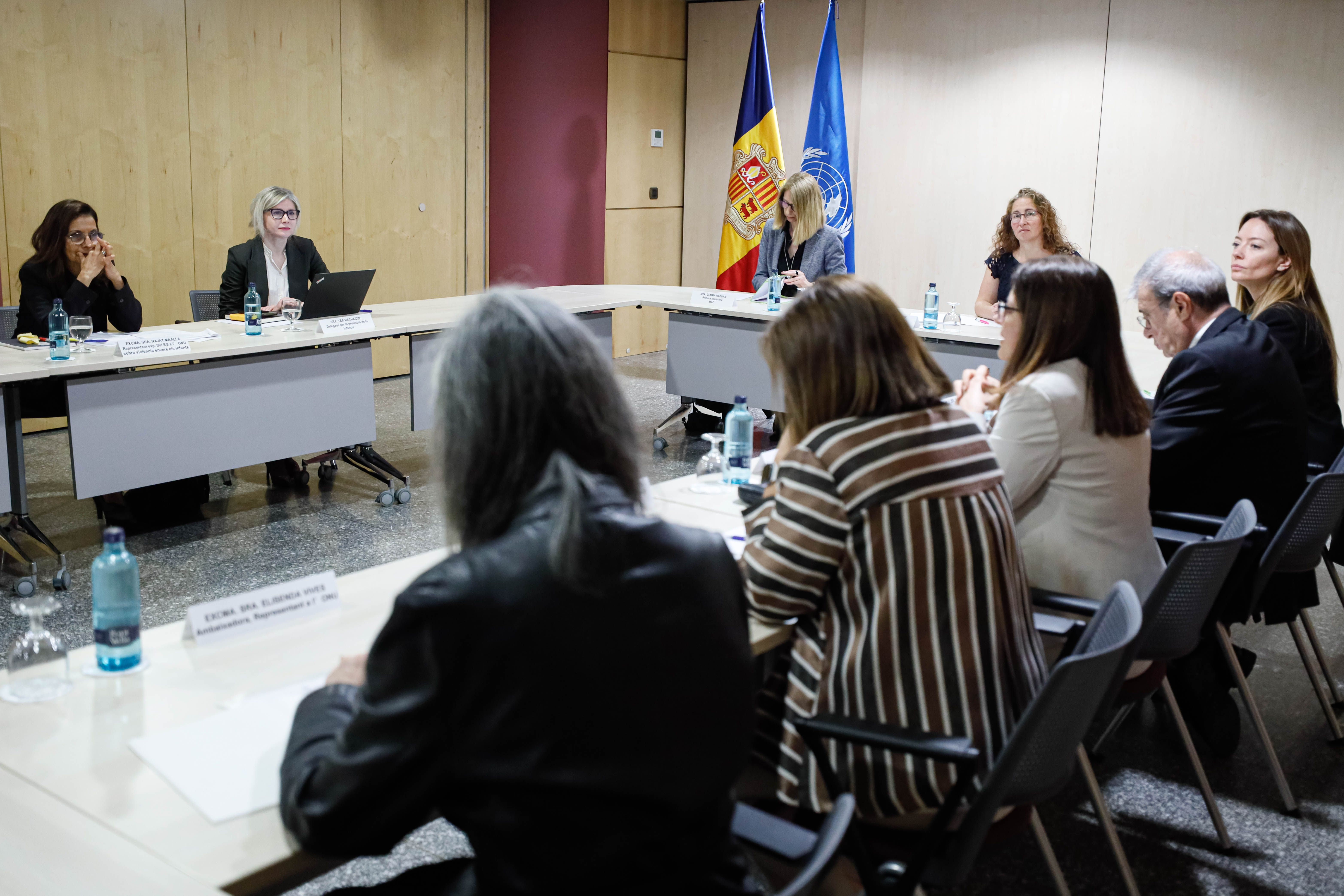 Posteriorment, i ja en presència de Tor, la representant de l’ONU ha mantingut una reunió de treball amb els titulars d’Afers Socials i Funció Pública, Trini Marín, de Relacions Institucionals, Educació i Universitats, Ladislau Baró, i de Salut, Helena Mas, durant la qual ha presentat el mandat i ha intercanviat opinions sobre problemàtiques globals i comunes que afecten la infància i l’adolescència en aquests moments, com poden ser la salut mental dels adolescents, l’assetjament escolar i cibernètic o la violència entre menors.