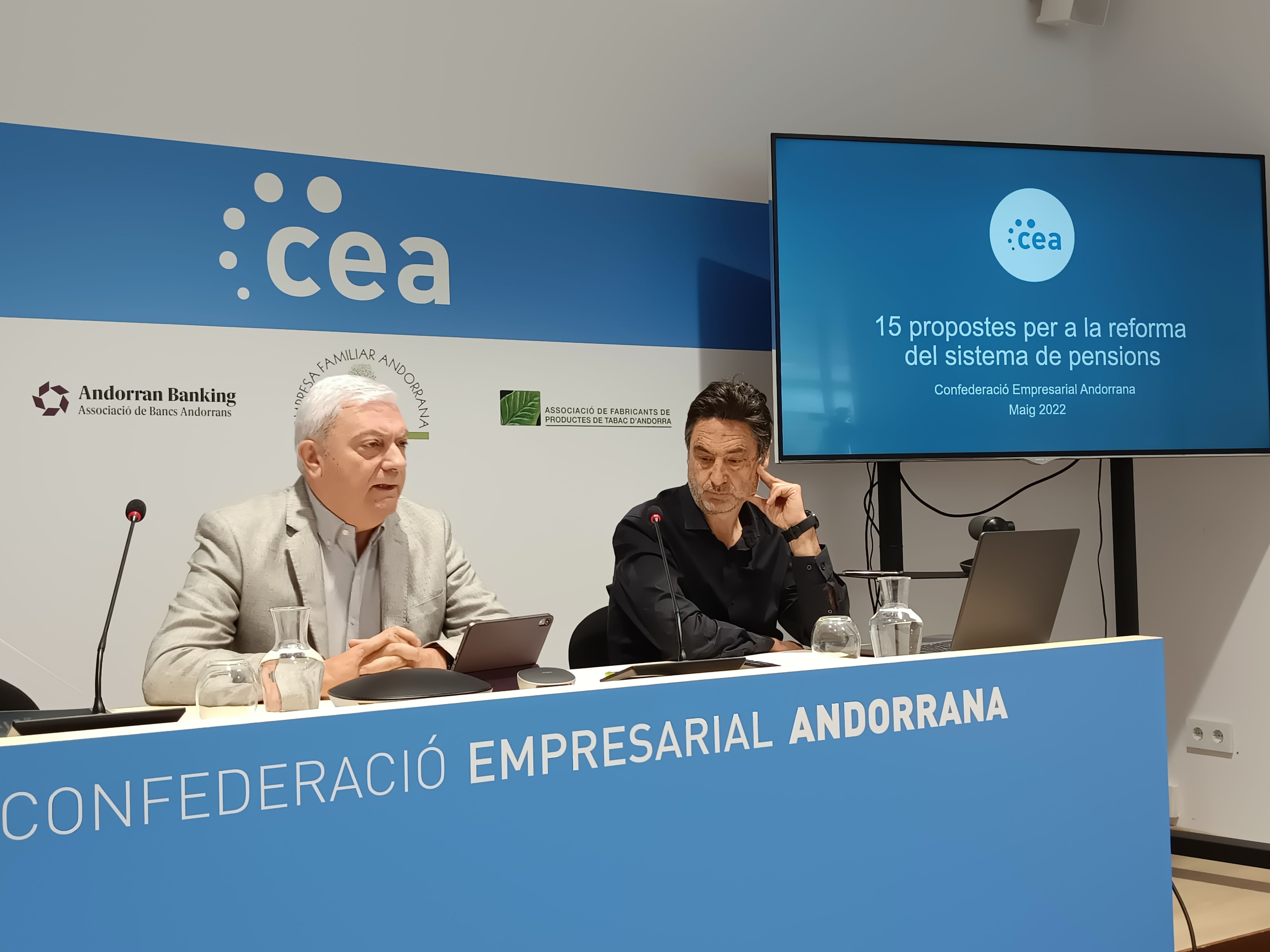 La Confederació Empresarial Andorrana (CEA) es fa seves les 14 propostes que va presentar la CASS per garantir la sostenibilitat del sistema de pensions, “perquè les trobem sostenibles, equilibrades i equitatives”, si bé hi introdueix alguns matisos, ja que considera que el gruix de l’esforç “sorgirà del teixit productiu del país”. Per aquest motiu, una de les primeres qüestions que es planteja és que l’increment dels 4 punts de cotització es reparteixi a raó d’un punt a càrrec de l’empresa i tres a càrrec de l’assalariat. L’objectiu final és que s’equipari la cotització entre empresa i assalariat en un 50%. Així ho van exposar el president de la CEA, Gerard Cadena, i el representant de la patronal al consell d’administració de la CASS, Francesc Zamora, en la presentació de les propostes que s’han fet arribar a la comissió especial per a la sostenibilitat de les pensions. “Estarem molt atents que les càrregues es distribueixin bé dins el teixit productiu, que siguin graduals i que no signifiquin un llast, sobretot, per a les petites i mitjanes empreses”, va afirmar Zamora.
