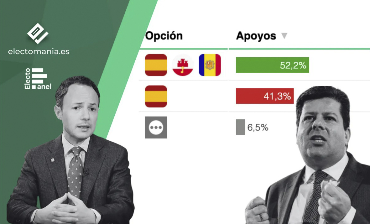 Els que sigueu amants de les enquestes polítiques segur que coneixeu el portal especialitzat en sondejos d’opinió Electomania. En la segona entrega sobre l’iberisme, la majoria d’espanyols consultats apostaria per annexionar Andorra i Gibraltar a Espanya, després que en la primera entrega també una majoria, en aquest cas més àmplia, apostés per incorporar Portugal en un hipotètic nou Estat ibèric. En concret, el 52,2% dels espanyols estaria a favor de l’annexió d’Andorra i Gibraltar, mentre que el 41,3% hi estaria en contra. Els que no responen estarien representats per un 6,5%.