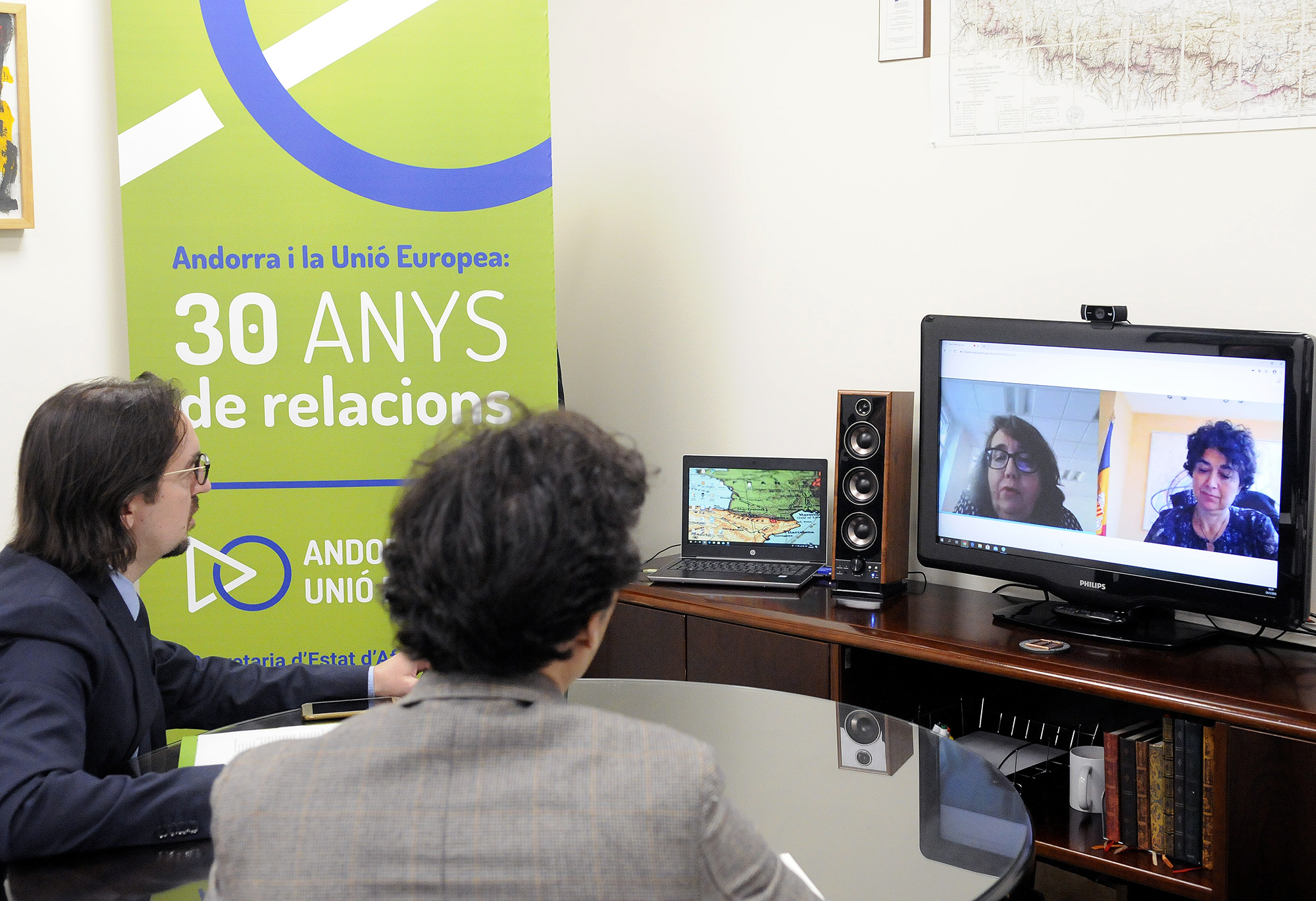 El Secretari d'Estat d'Afers Europeus, Landry Riba, s'ha reunit avui amb la seva homòloga francesa, Sandrine Gaudin, per tractar l'estat de les negociacions per l'Acord d'Associació d'Andorra amb la Unió Europea i compartir les noves prioritats en el marc de la negociació a causa de la repercussió de la crisi sanitària. La trobada s'ha realitzat de manera telemàtica, de la mateixa manera que es va fer la setmana passada amb el secretari d'Estat espanyol.